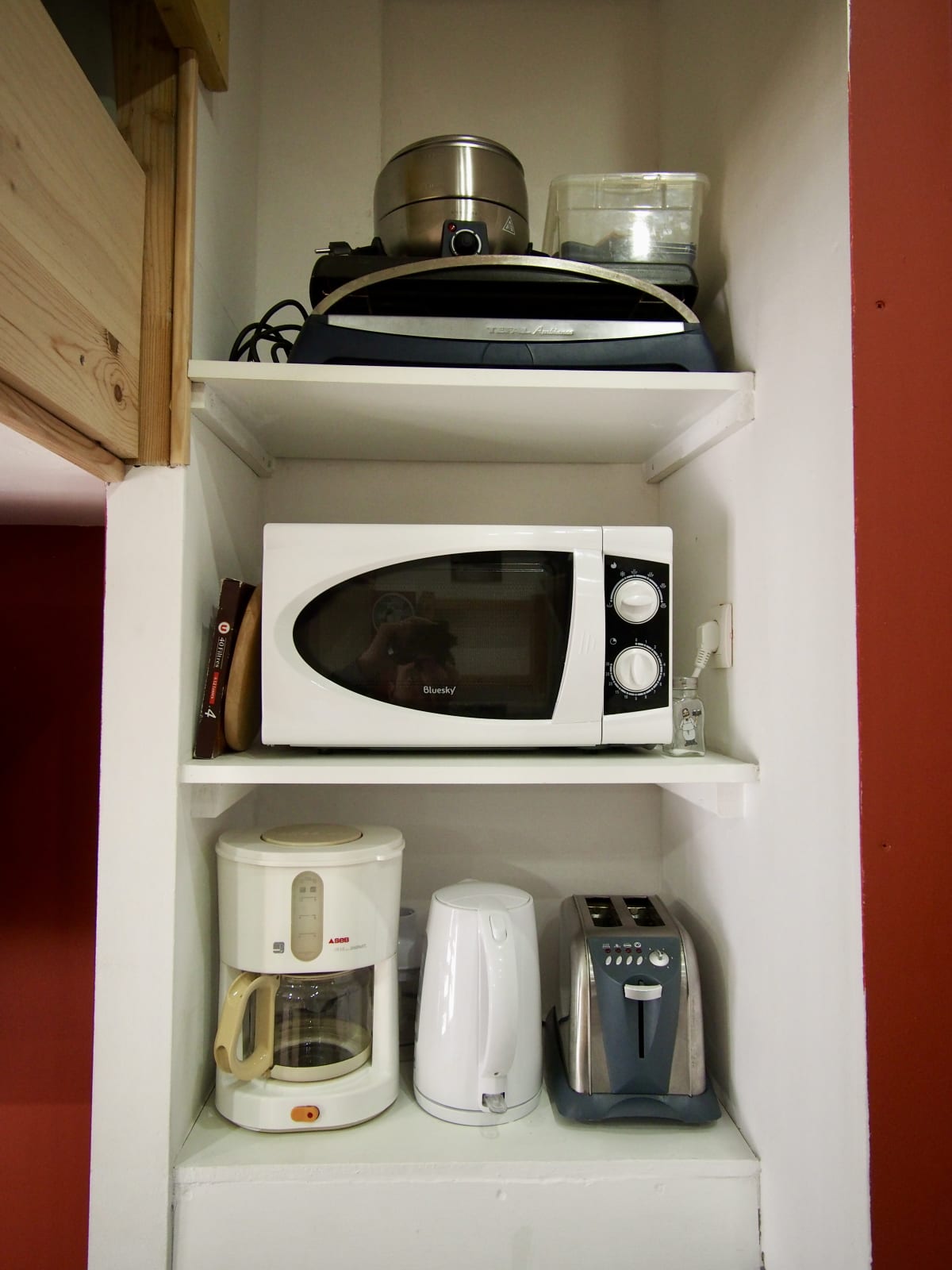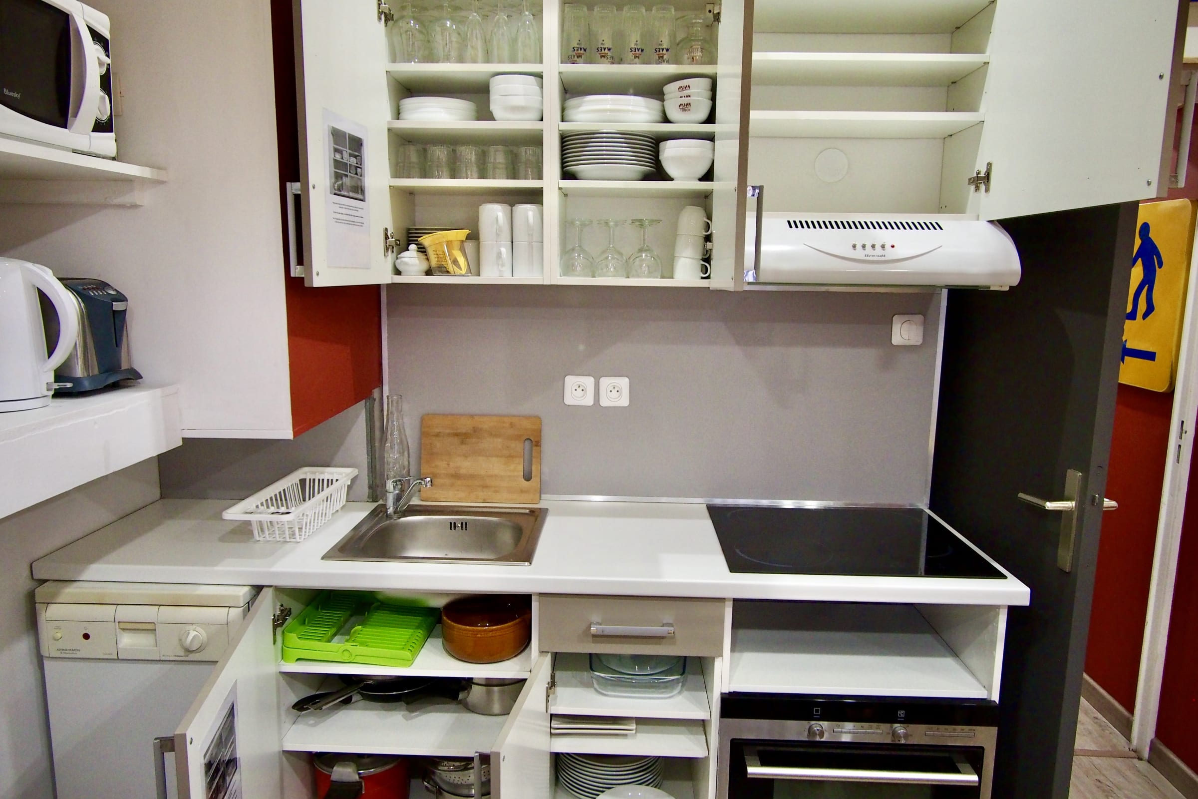 - Voll ausgestattete Küche: Geschirrspüler, Mikrowelle, herkömmlicher Backofen, Filterkaffeemaschine, Wasserkocher, Raclette-/Pierrerade- und Fondue-Set, Toaster, Mixer und Zitruspresse. Aber auch jede Menge Geschirr: Teller, Gläser, Besteck, Töpfe, Pfannen...
