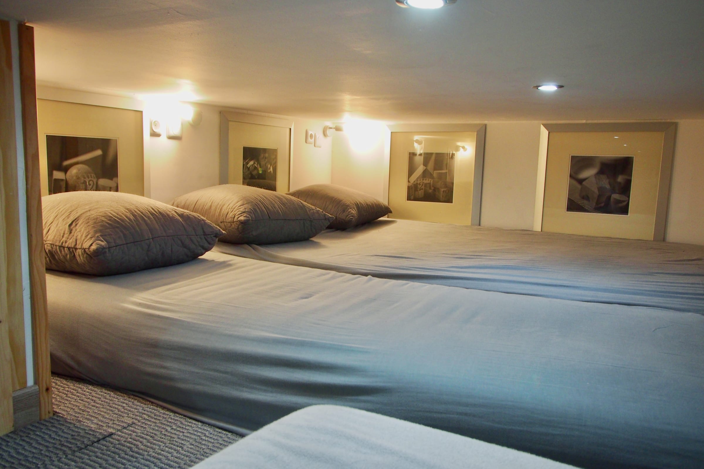 * ein Zwischengeschoss mit 1 Doppelbett und 2 Einzelbetten