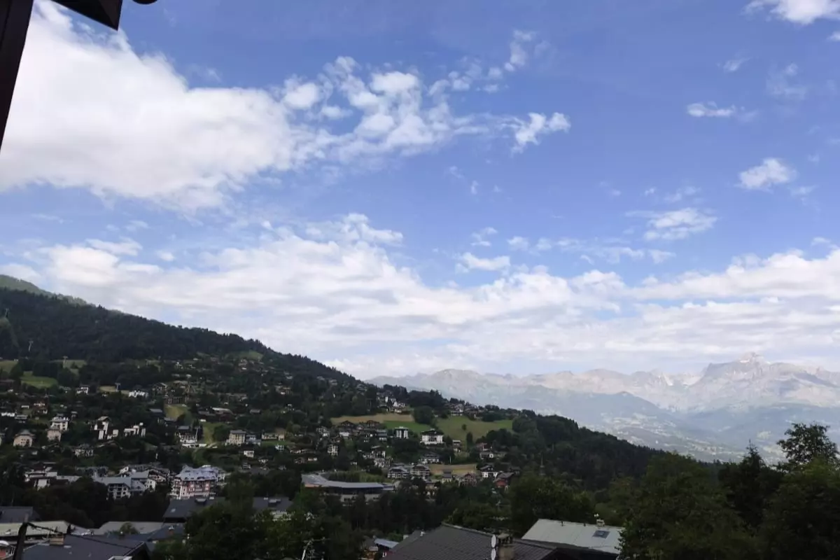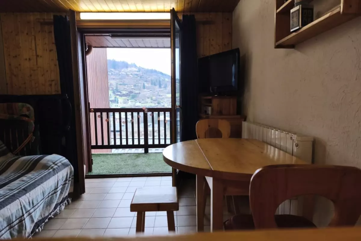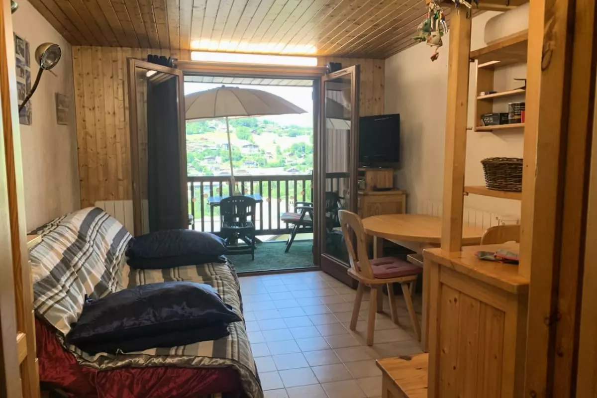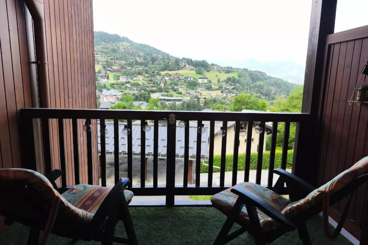 Wunderschöne 25 Quadratmeter große Unterkunft in Saint-Gervais-les-Bains mit herrlichem Blick auf das Dorf und den Aravis von der Terrasse aus.