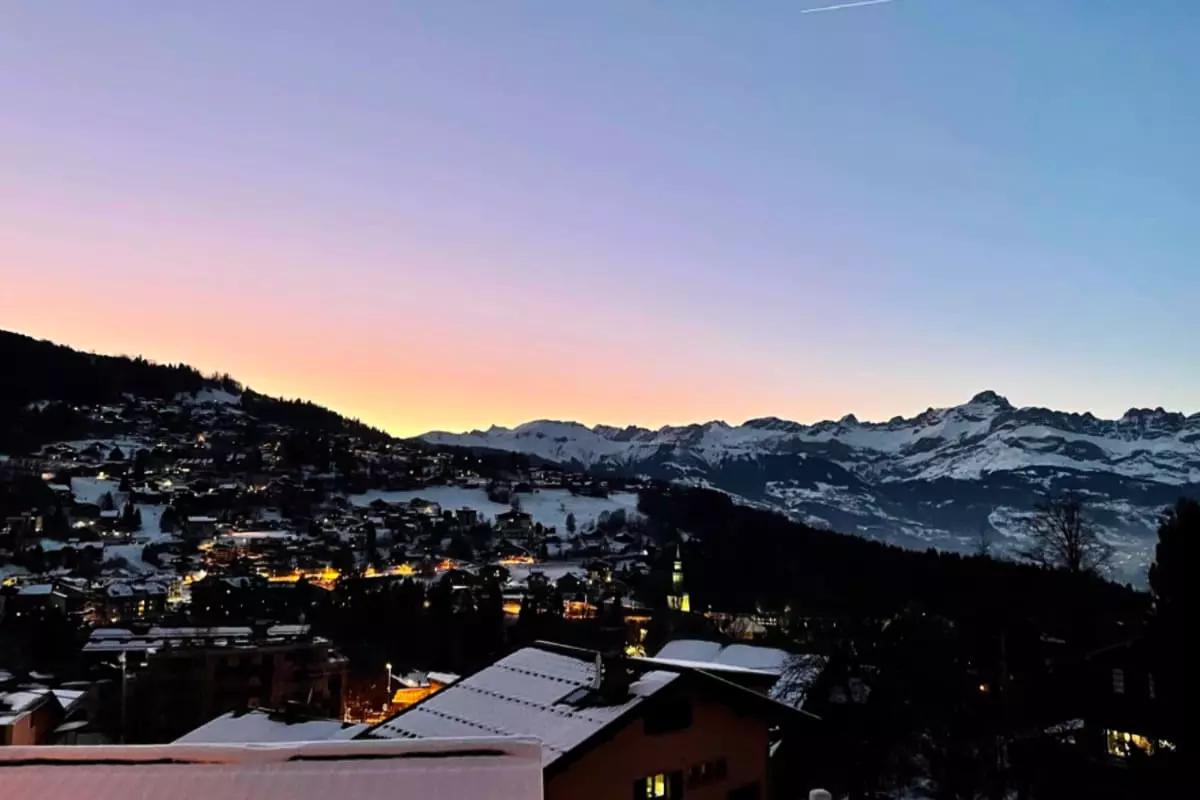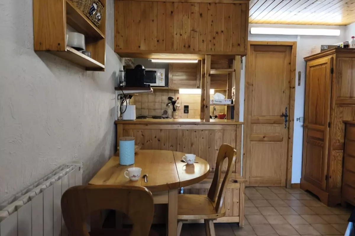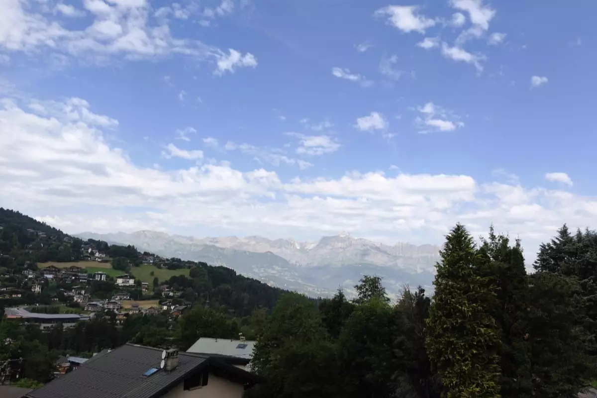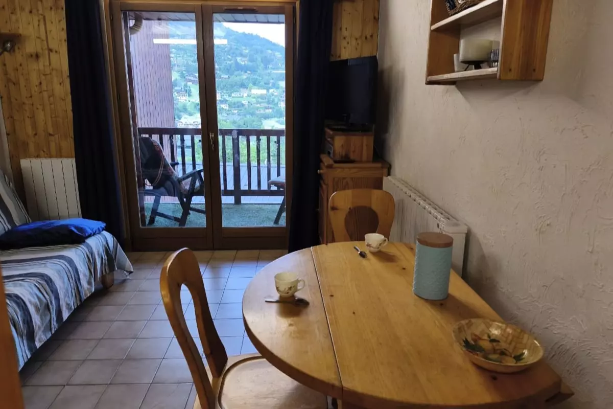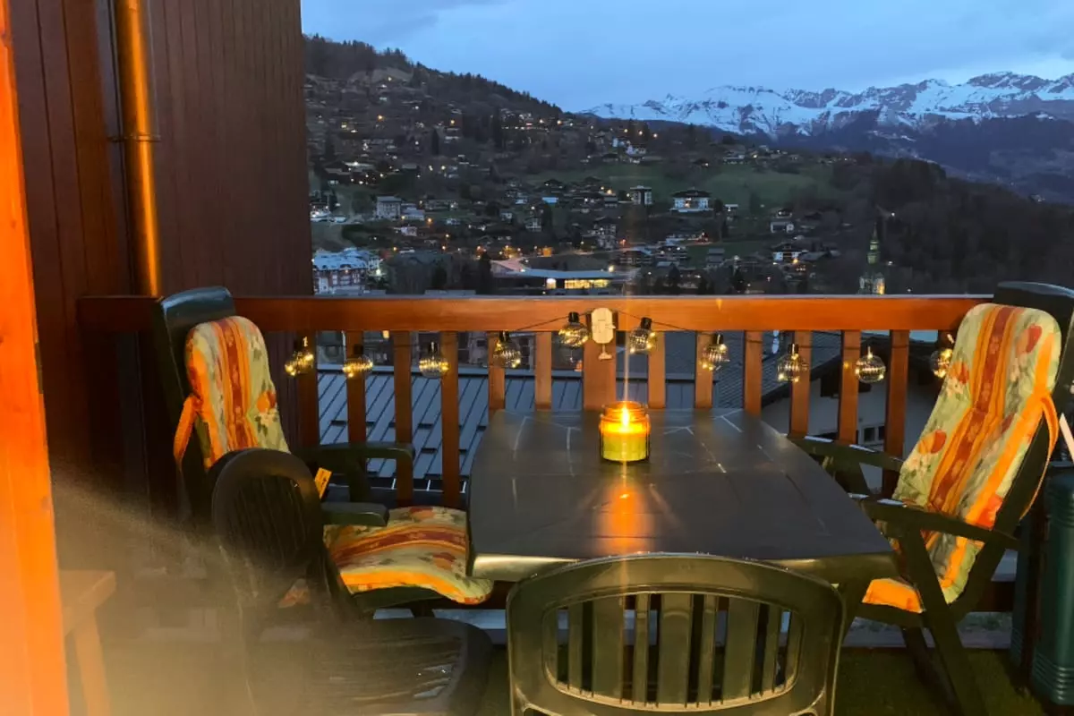 Wunderschöne 25 Quadratmeter große Unterkunft in Saint-Gervais-les-Bains mit herrlichem Blick auf das Dorf und den Aravis von der Terrasse aus.