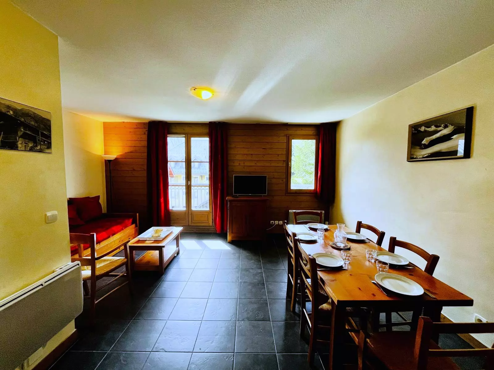 Ideal für einen Urlaub mit Familie oder Freunden: Diese 49 m² große Zweizimmerwohnung bietet Platz für bis zu 6 Personen und liegt in ruhiger Lage. Sie vereint Komfort und Ruhe. Die Wohnung befindet sich im ersten Stock und verfügt über einen Balkon mit Südwestausrichtung und Blick auf den Mont Joly.