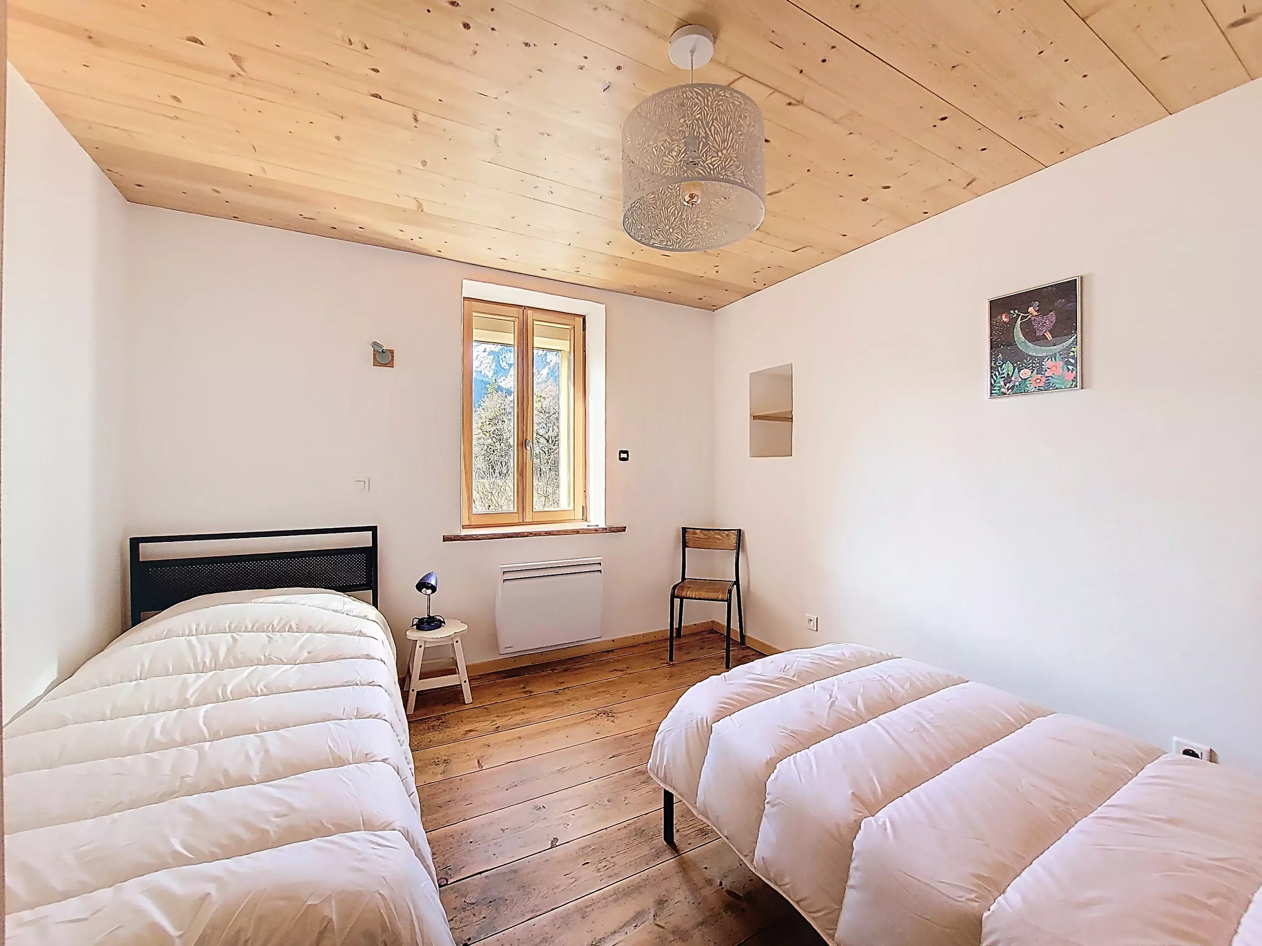 - Zweites Schlafzimmer: zwei Einzelbetten und ein Kleiderschrank mit integrierter Kleiderstange.