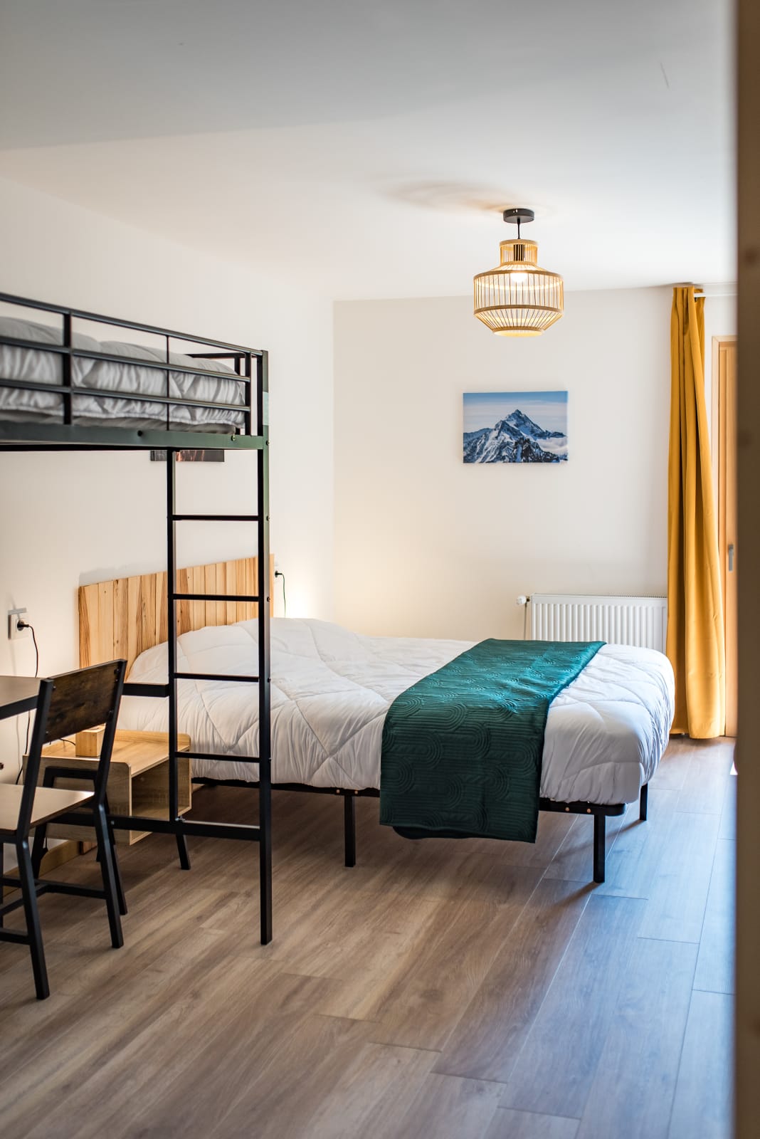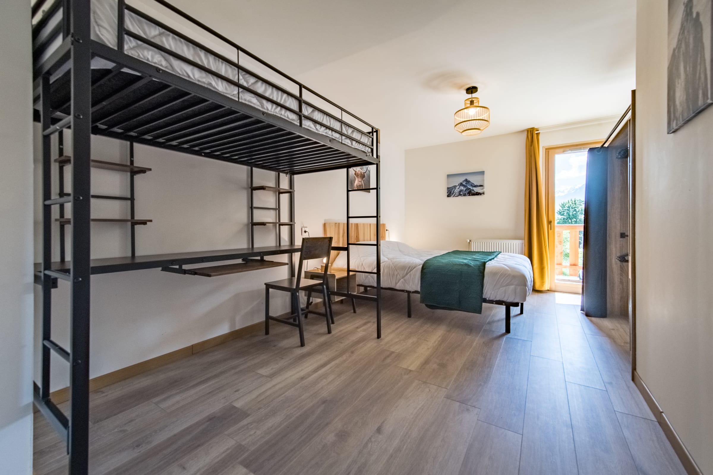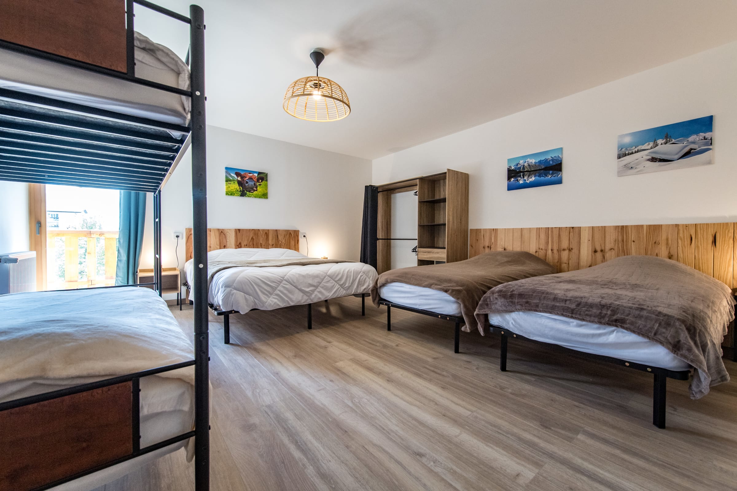 Das letzte Schlafzimmer, als „Schlafsaal“ konzipiert, besitzt ein Queensize-Bett, zwei Einzelbetten und ein Etagenbett – ideal für Kinder.