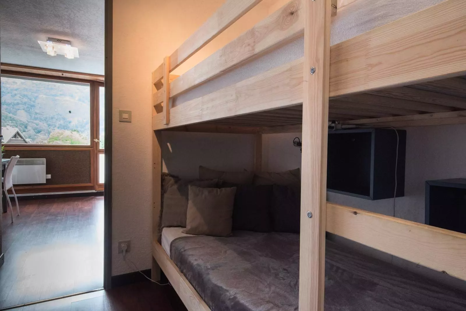 Im Eingangsbereich finden Sie 2 Etagenbetten, ein Badezimmer und eine separate Toilette.