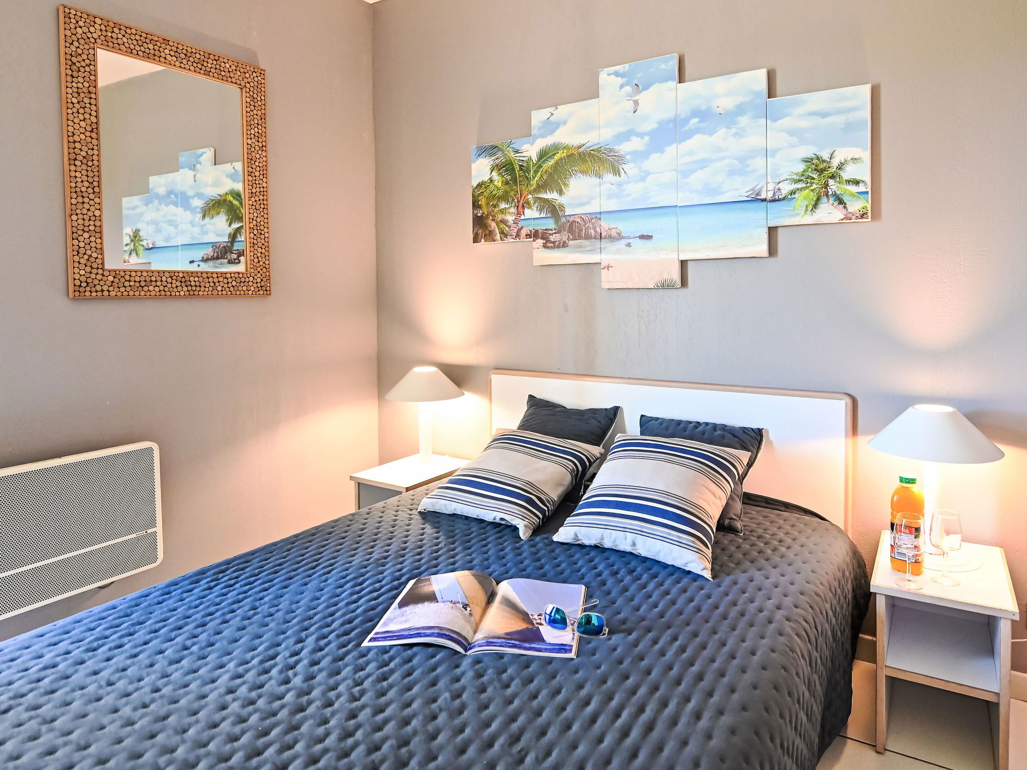 "Les Bastides ", 2-Zimmer-Wohnung 36 m2, im erhöhten Erdgeschoss. Wohnzimmer mit 2 Diwanbetten (80 cm, Länge 190 cm), TV (Flachbildschirm). Ausgang zum Garten, zur Terrasse. 1 Zimmer mit 1 franz. Bett (140 cm, Länge 190 cm). Ausgang zur Terrasse. Kochnische (4 Kochplatten, Backofen, Toaster, Wasserkocher, Mikrowelle, Tiefkühler, elektrische Kaffeemaschine). Bad/WC. E-Heizung. Terrasse 10 m2, Gartensitzplatz. Terrassenmöbel. Sicht auf das Meer. Zur Verfügung: Internet (Wireless LAN, extra). Parkplatz (1 Auto) beim Haus. Bitte beachten: Nichtraucher-Unterkunft. 1 kleines Haustier/Hund erlaubt. Rauchmelder. Inserat einer Privatperson nach Artikel 155, IV, CGI.