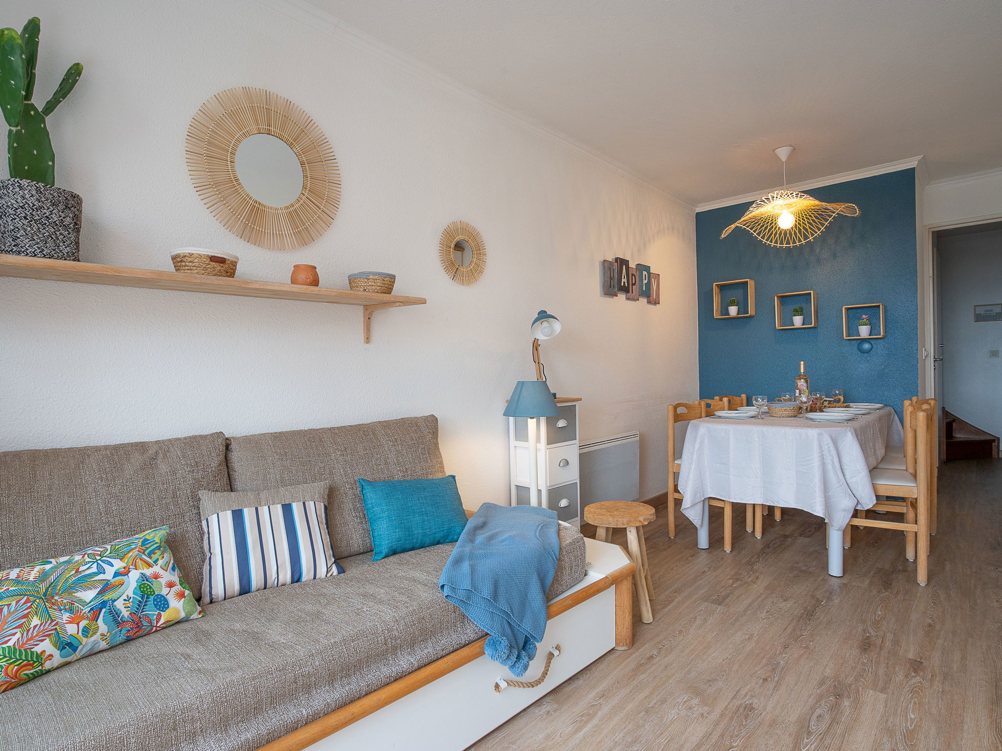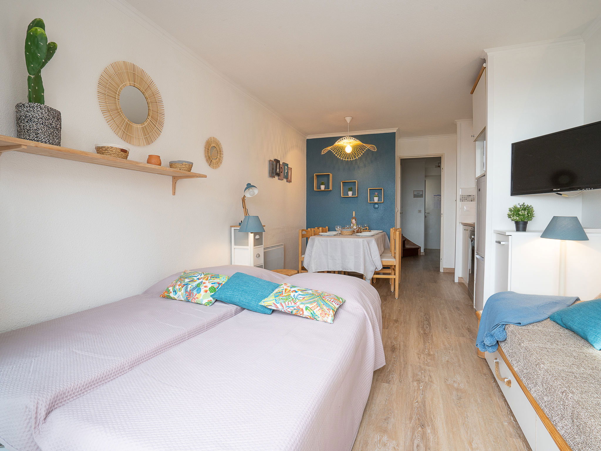 "L'Esquinade J5 226", 3-Zimmer-Maisonette-Wohnung 40 m2. Wohnzimmer mit 1 Diwanbett (80 cm, Länge 190 cm), 1 Ausziehbett (2 x 80 cm, Länge 190 cm), TV (Flachbildschirm). Ausgang zur Terrasse. 1 Zimmer mit 1 x 2 Etagenbetten (80 cm, Länge 190 cm). Offene Küche (4 Kochplatten, Geschirrspüler, Toaster, Mikrowelle, elektrische Kaffeemaschine, Kombinationsmikrowelle). Bad, sep. WC. Obergeschoss: 1 Zimmer mit 1 franz. Bett (140 cm, Länge 190 cm). Ausgang zur Terrasse. Bad/WC. E-Heizung. Terrasse. Terrassenmöbel. Sicht auf das Meer. Parkplatz Nr. 2130 (überdacht, 1 Auto), Höhe 180 cm. Bitte beachten: Nichtraucher-Unterkunft. 1 kleines Haustier/Hund erlaubt. Rauchmelder. Inserat einer Privatperson nach Artikel 155, IV, CGI. 118R03933F