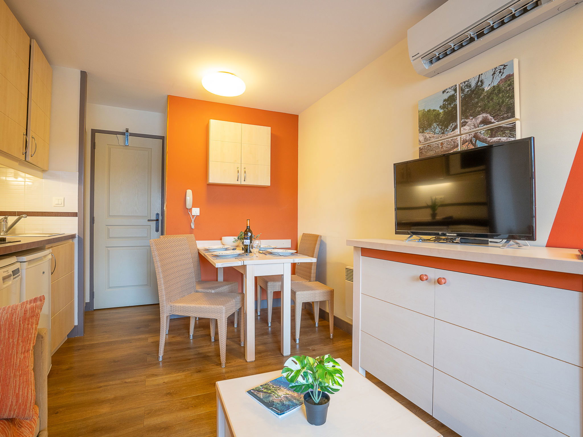 "Le Village ", 1-Zimmer-Studio 23 m2 im 2. Stock. Objekt geeignet für 2 Erwachsene + 2 Kinder. Wohnzimmer mit 1 Diwanbett (140 cm, Länge 190 cm), TV (Flachbildschirm), Klimaanlage. Ausgang zur Terrasse. Kabine mit 1 x 2 Etagenbetten (80 cm, Länge 190 cm). Kochnische (4 Kochplatten, Geschirrspüler, Toaster, Wasserkocher, elektrische Kaffeemaschine, Kombinationsmikrowelle). Bad, sep. WC. E-Heizung. Terrasse 8 m2. Terrassenmöbel. Zur Verfügung: Internet (Wireless LAN, extra). Parkplatz Nr. 2333 (überdacht, 1 Auto), Höhe 180 cm. Bitte beachten: Nichtraucher-Unterkunft. Maximal 1 kleines Haustier/Hund erlaubt. Rauchmelder. Anstelle eines abgeschlossenen Schlafzimmers befinden sich manche Schlafplätze in einem offenen Bereich (Galerie, Nische etc.). Inserat einer Privatperson nach Artikel 155, IV, CGI. 118R03670A