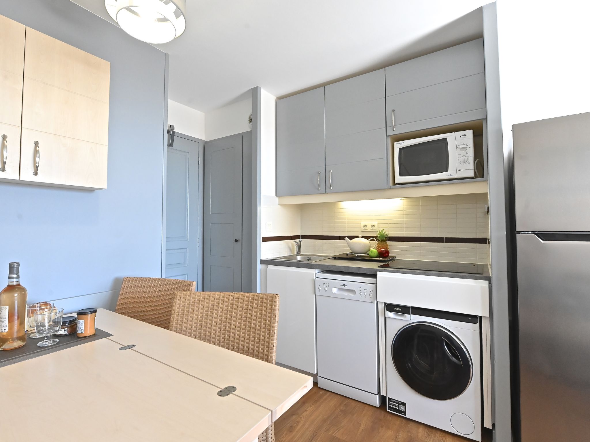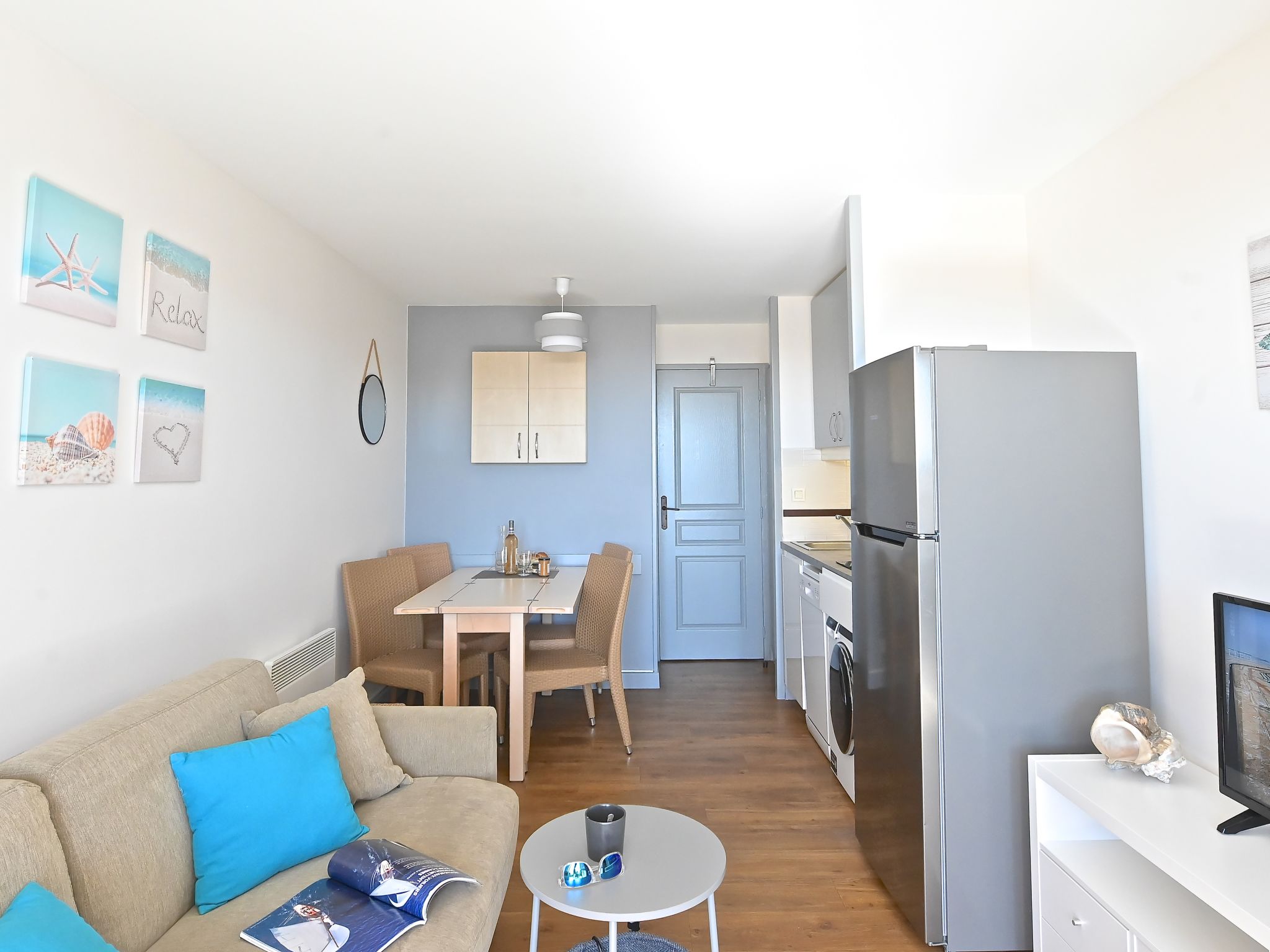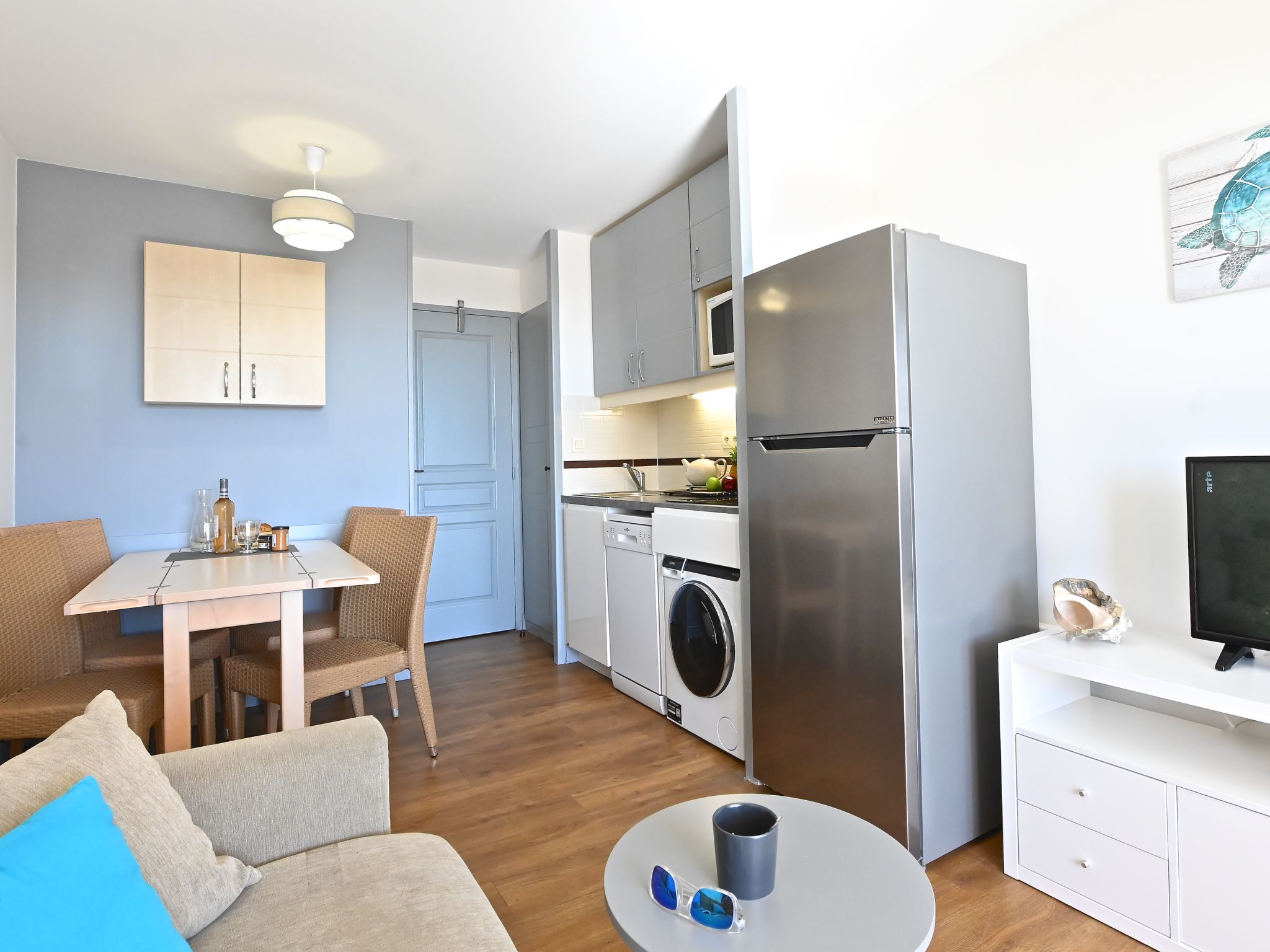 "L'Esquinade ", 1-Zimmer-Studio 23 m2 im 1. Stock. Objekt geeignet für 2 Erwachsene + 2 Kinder. Hell, vollständig renoviert im Jahre 2025, komfortabel eingerichtet: Wohnzimmer mit 1 Doppeldiwanbett (1 x 140 cm, Länge 190 cm), TV (Flachbildschirm), Klimaanlage. Ausgang zur Terrasse. Kabine mit 1 x 2 Etagenbetten (90 cm, Länge 190 cm). Kochnische (Geschirrspüler, 4 Glaskeramikplatten, Toaster, Wasserkocher, Mikrowelle, Tiefkühler, elektrische Kaffeemaschine, Kapseln für die Kaffeemaschine (Dolce Gusto) extra). Bad/WC. E-Heizung. Terrasse 10 m2, überdacht, Südlage. Terrassenmöbel. Eingeschränkte Sicht auf das Meer, die Berge und den Golfplatz. Zur Verfügung: Waschmaschine. Internet (WLAN, extra). Parkplatz (1 Auto). Bitte beachten: Nichtraucher-Unterkunft. Maximal 1 Haustier/Hund erlaubt. Rauchmelder. Inserat einer Privatperson nach Artikel 155, IV, CGI.
