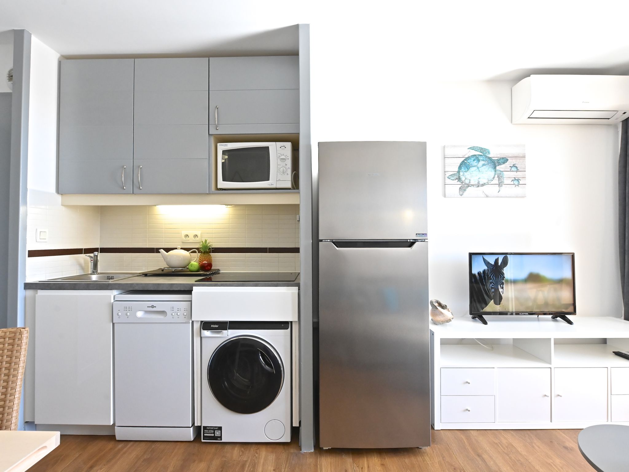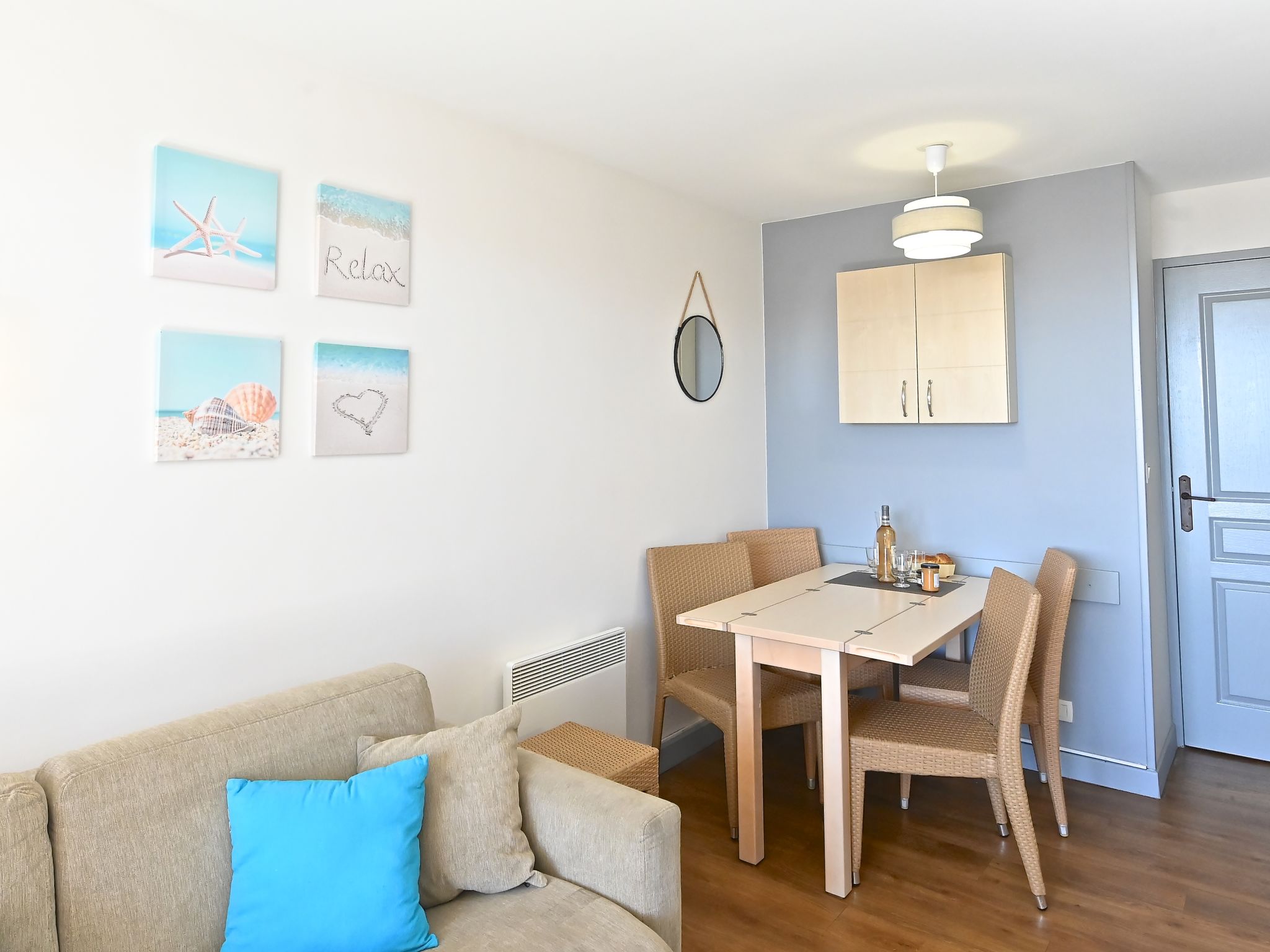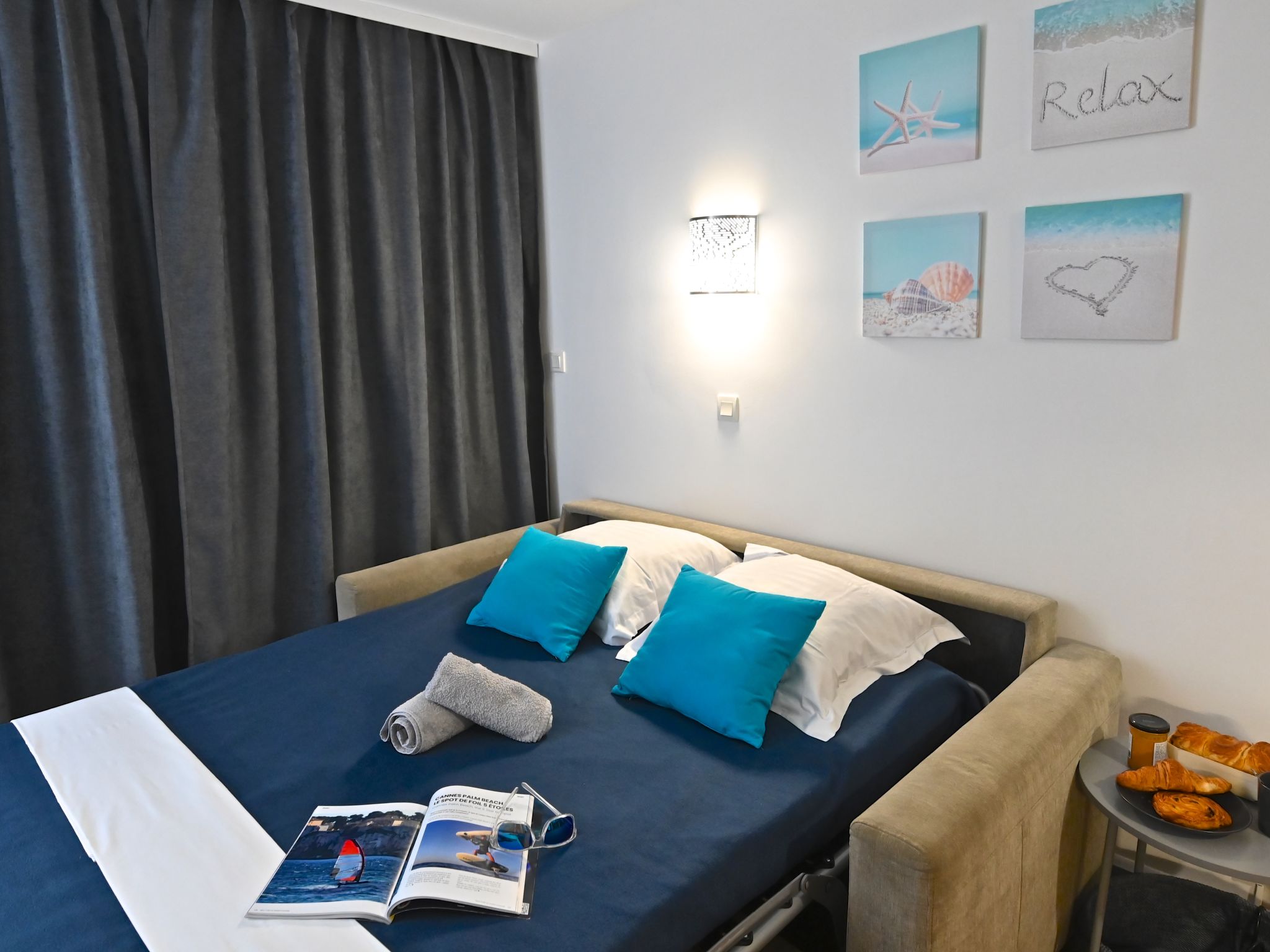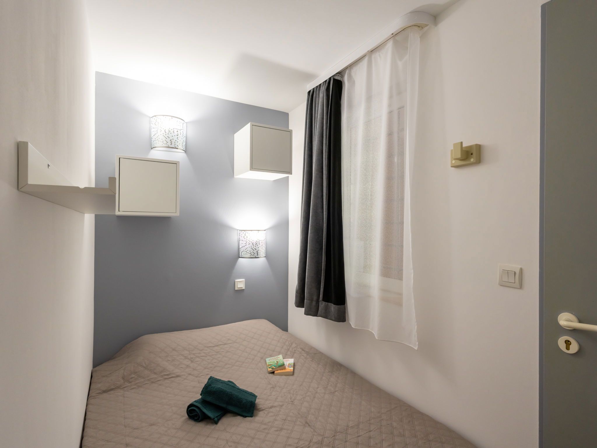 "L'Esquinade ", 1-Zimmer-Studio 23 m2 im 1. Stock. Objekt geeignet für 2 Erwachsene + 2 Kinder. Hell, vollständig renoviert im Jahre 2025, komfortabel eingerichtet: Wohnzimmer mit 1 Doppeldiwanbett (1 x 140 cm, Länge 190 cm), TV (Flachbildschirm), Klimaanlage. Ausgang zur Terrasse. Kabine mit 1 x 2 Etagenbetten (90 cm, Länge 190 cm). Kochnische (Geschirrspüler, 4 Glaskeramikplatten, Toaster, Wasserkocher, Mikrowelle, Tiefkühler, elektrische Kaffeemaschine, Kapseln für die Kaffeemaschine (Dolce Gusto) extra). Bad/WC. E-Heizung. Terrasse 10 m2, überdacht, Südlage. Terrassenmöbel. Eingeschränkte Sicht auf das Meer, die Berge und den Golfplatz. Zur Verfügung: Waschmaschine. Internet (WLAN, extra). Parkplatz (1 Auto). Bitte beachten: Nichtraucher-Unterkunft. Maximal 1 Haustier/Hund erlaubt. Rauchmelder. Inserat einer Privatperson nach Artikel 155, IV, CGI.