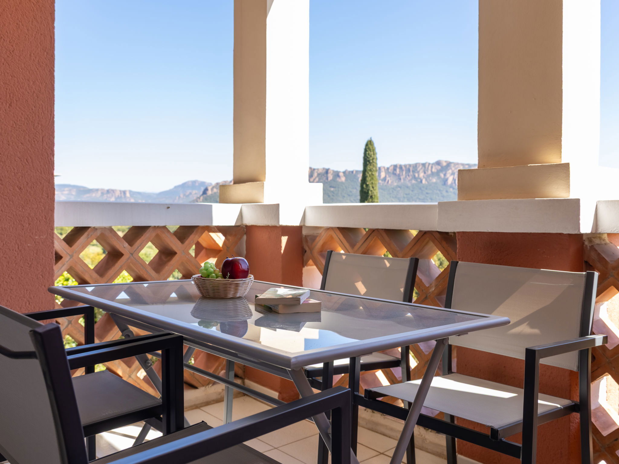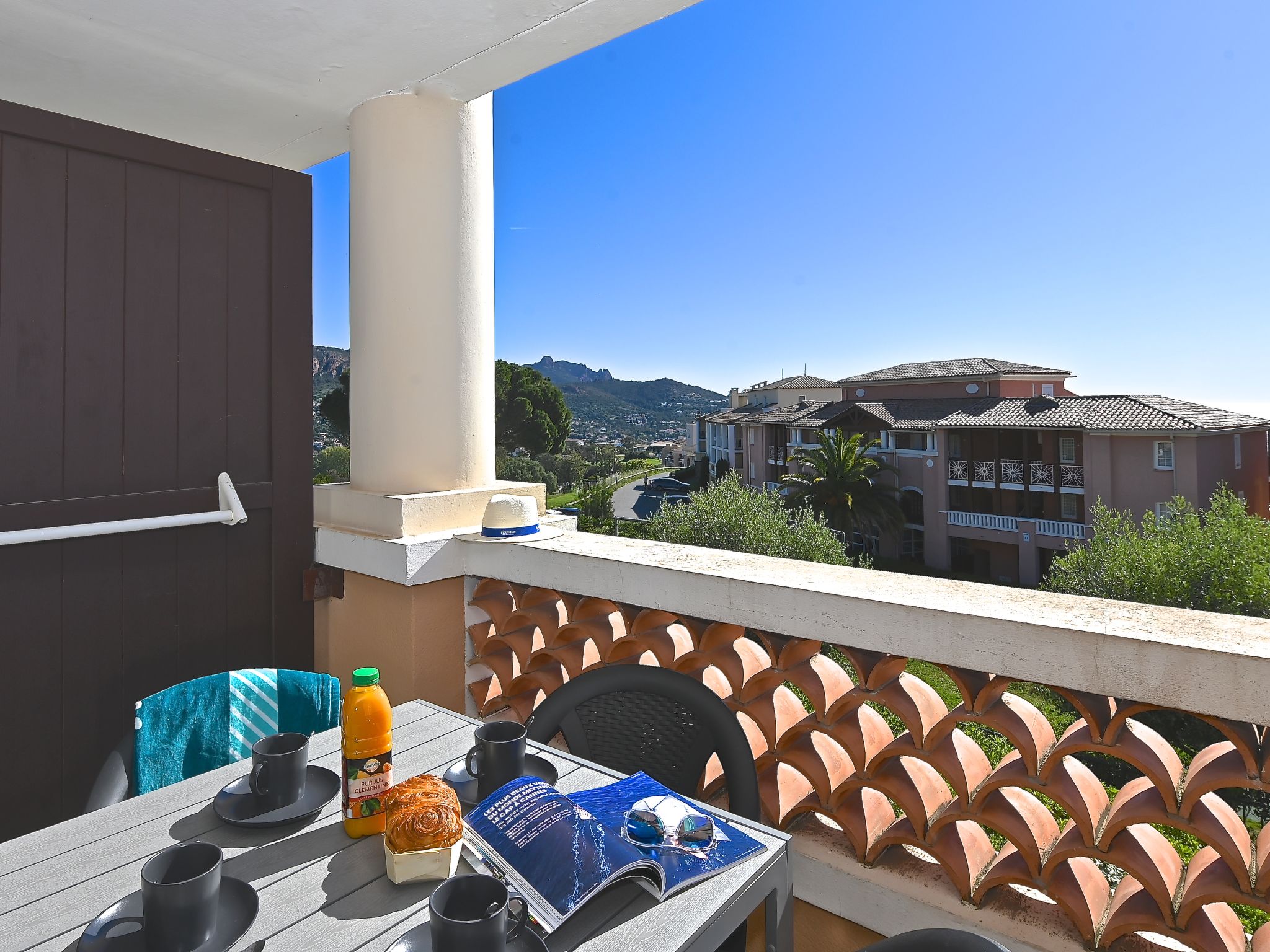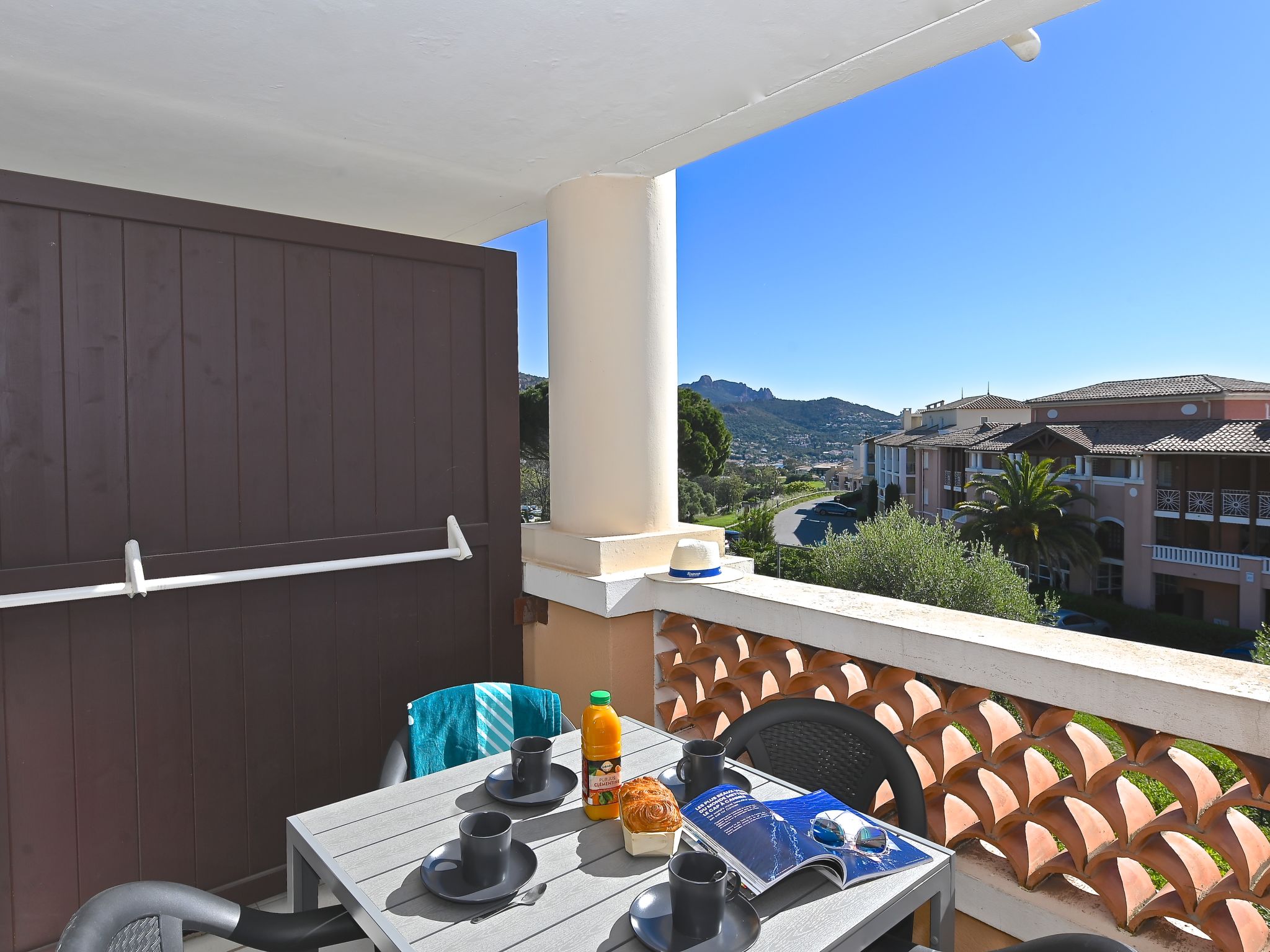 Grosse Ferienanlage "Village Cap Estérel - L'Esquinade", Baujahr 1990. Am Ortsrand, 2 km vom Zentrum von Agay, am Hang, in einem Wohnquartier, 900 m vom Meer, 900 m vom Strand, Strasse zu überqueren, am Golfplatz, in einer Fussgängerzone. Zur Mitbenutzung: Park 210 ha, 5 Schwimmbäder (saisonale Verfügbarkeit: 06.Apr. - 03.Nov.). Kinderbecken, Boccia, Kinderspielplatz (Rutschbahn, Schaukel). In der Anlage: Wellnessbereich (extra), Einkaufsmöglichkeit, Wäscherei (extra). Einkaufsgeschäft, Lebensmittelgeschäft 500 m, Supermarkt 6 km, Restaurant, Bäckerei, Café, Fahrradverleih 500 m, Bushaltestelle "Ligne 21" 300 m, Bahnstation "Saint-Raphaël-Valescure - Agay" 9 km, Sandstrand "Le Pourrousset" 800 m. Jacht-Hafen 1 km, Golfplatz (9 Loch) 300 m, Tennis 500 m. Nahe gelegene Sehenswürdigkeiten: Anthéor 8 km, Saint-Raphaël 9 km, Fréjus 13 km, Cannes 33 km, Saint-Tropez 50 km, Nice 76 km. Bekannte Seen in der Umgebung sind gut erreichbar: Lac Saint-Cassien. Wandergebiete: Massif de l'Estérel. Bitte beachten: autofreie Ferienanlage, kein Fahrstuhl vorhanden. Animation in der Saison. Geeignet für Familien, Kinderbetreuung in der Saison (extra). Bewachte Residenz. Die Schlüsselübergabe findet bei der Agentur in Cap Estérel statt. Die Wohnung befindet sich in einer für den Verkehr begrenzt zugänglichen Zone (ZTL). Weitere Unterkünfte sind buchbar.