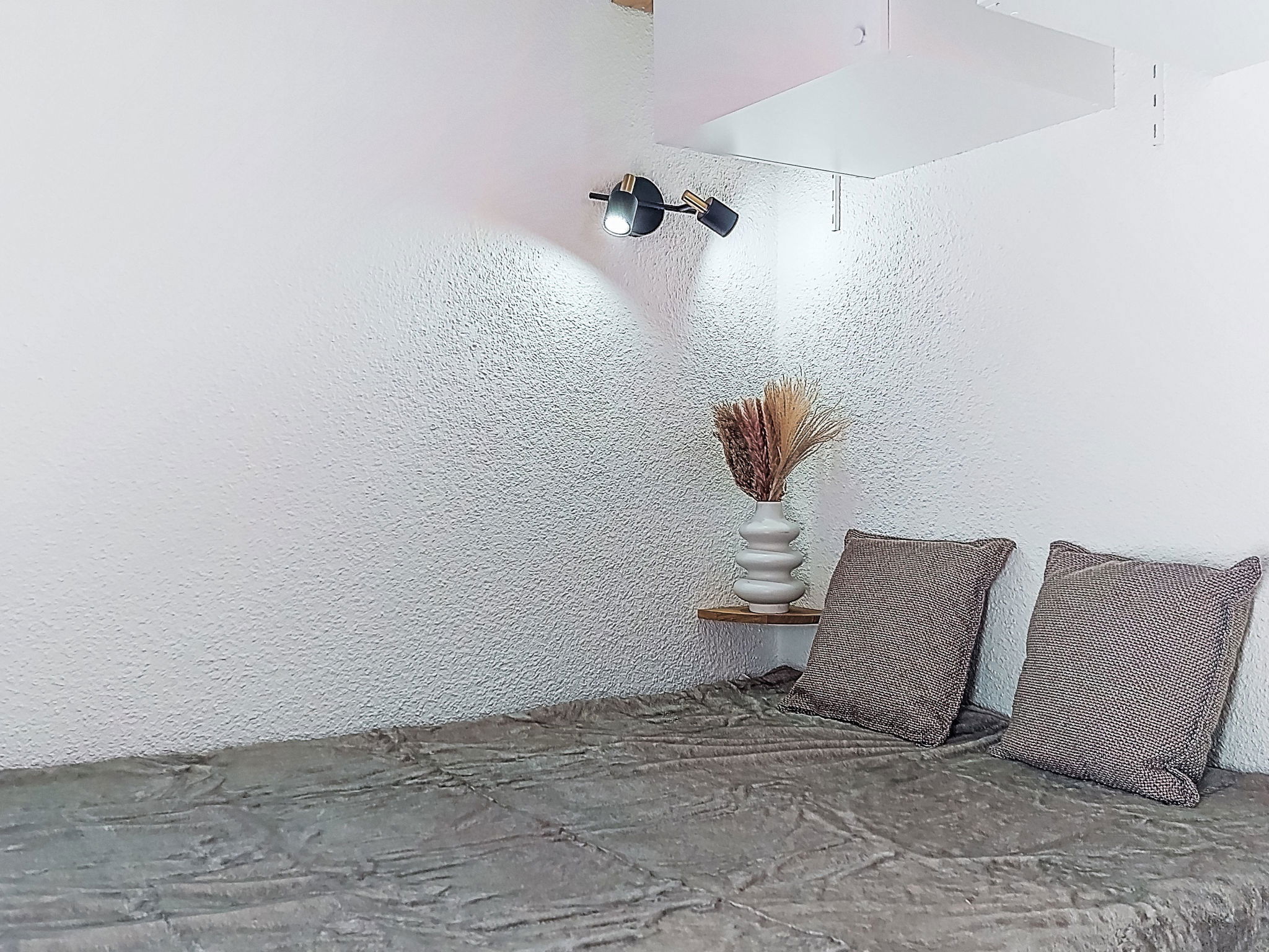 "Cimes de Caron 1603", 1-Zimmer-Wohnung 24 m2 im 6. Stock, Südlage. Hell, sehr komfortabel eingerichtet: Wohn-/Esszimmer mit 1 x 2 Etagenbetten (80 cm, Länge 190 cm), TV (Flachbildschirm), E-Heizofen. Ausgang zum Balkon, Richtung Süden. 1 offenes kleines Zimmer mit 1 franz. Bett (140 cm, Länge 190 cm), E-Heizofen. Kochnische (2 Kochplatten, elektrische Kaffeemaschine, Racletteofen, Kombinationsmikrowelle). Dusche/WC. Kleiner Balkon 2 m2, Südlage. Zur Verfügung: Internet (Wireless LAN, extra). Bitte beachten: Nichtraucher-Unterkunft. Maximal 1 Haustier/Hund erlaubt. Rauchmelder. 73257010873DP