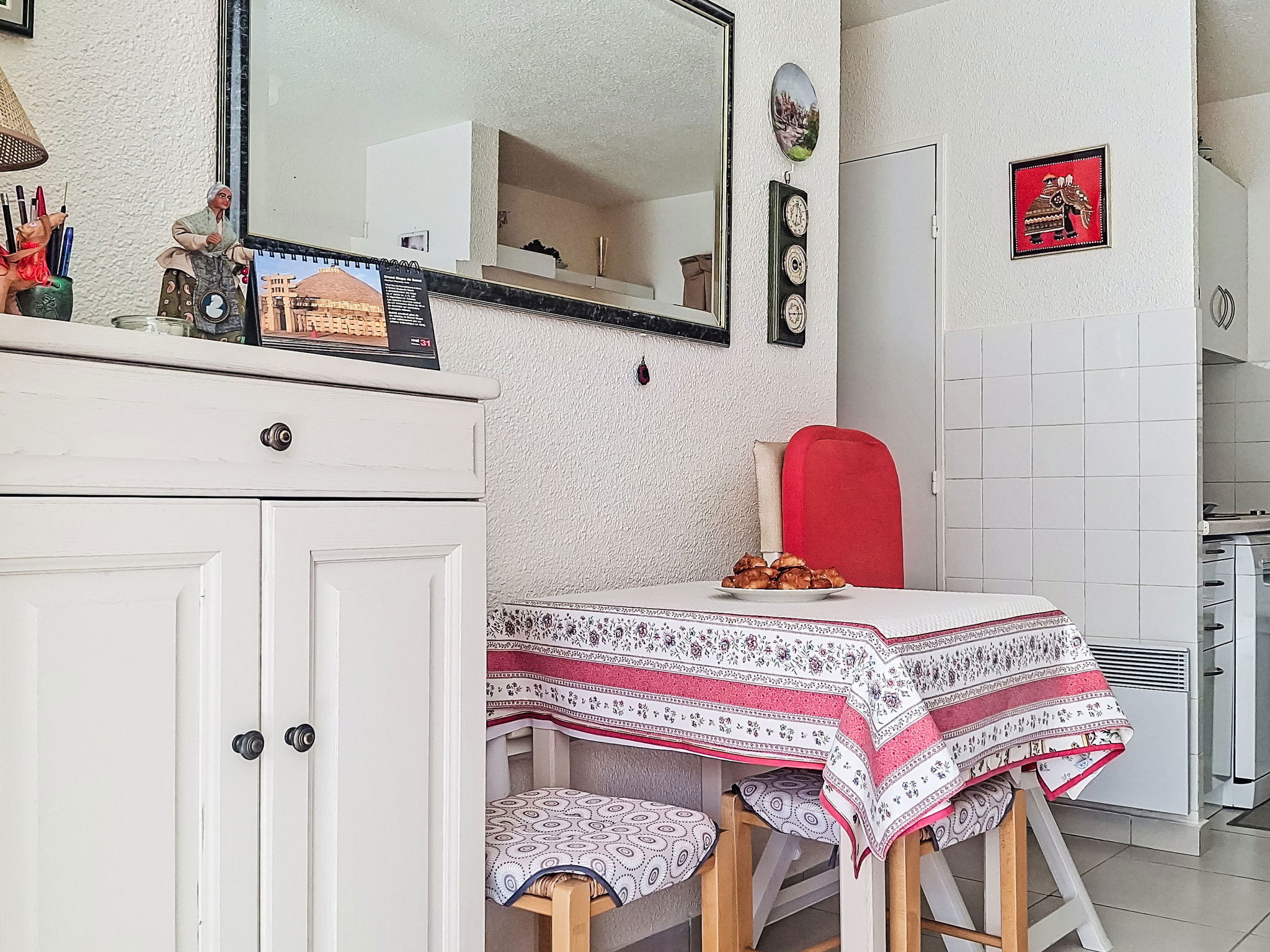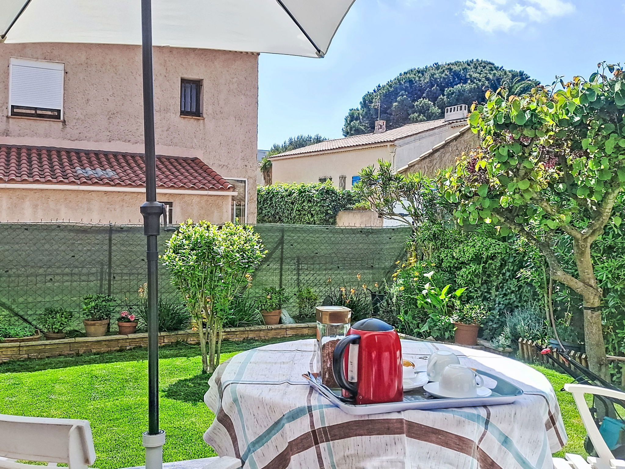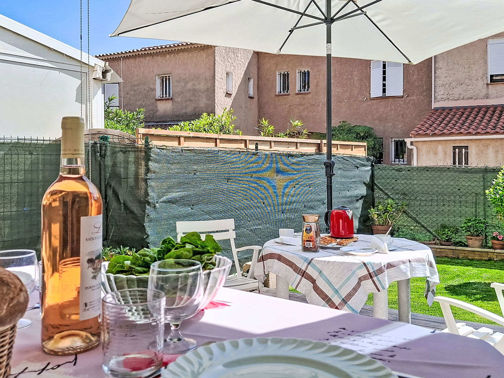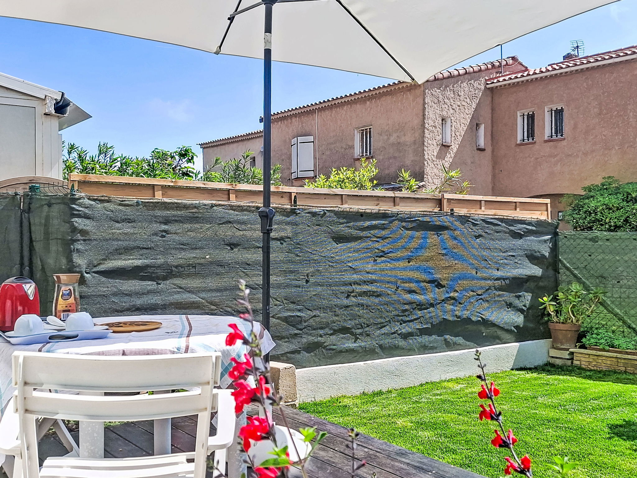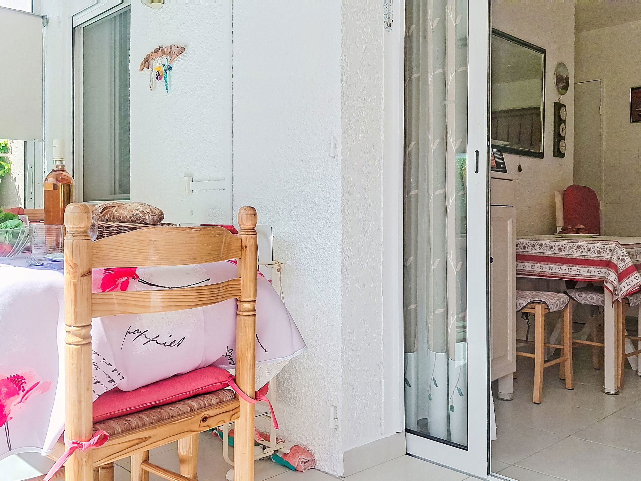 2-Zimmer-Wohnung 29 m2, im Erdgeschoss. Schön eingerichtet: Wohn-/Esszimmer mit 1 Bett (80 cm, Länge 190 cm), 1 Schlafmöglichkeit (70 cm, Länge 190 cm), TV (Flachbildschirm), Ventilator. Ausgang zur Terrasse. 1 Zimmer mit 1 franz. Bett (1 x 140 cm, Länge 190 cm), TV (Flachbildschirm). Kochnische (Geschirrspüler, 4 Glaskeramikplatten, Toaster, Wasserkocher, Mikrowelle, elektrische Kaffeemaschine). Bad, sep. WC. E-Heizung. Terrasse 30 m2, überdacht. Terrassenmöbel. Parkplatz. Bitte beachten: Maximal 1 kleines Haustier/Hund erlaubt. TV nur FR. Rauchmelder. Inserat einer Privatperson nach Artikel 155, IV, CGI.