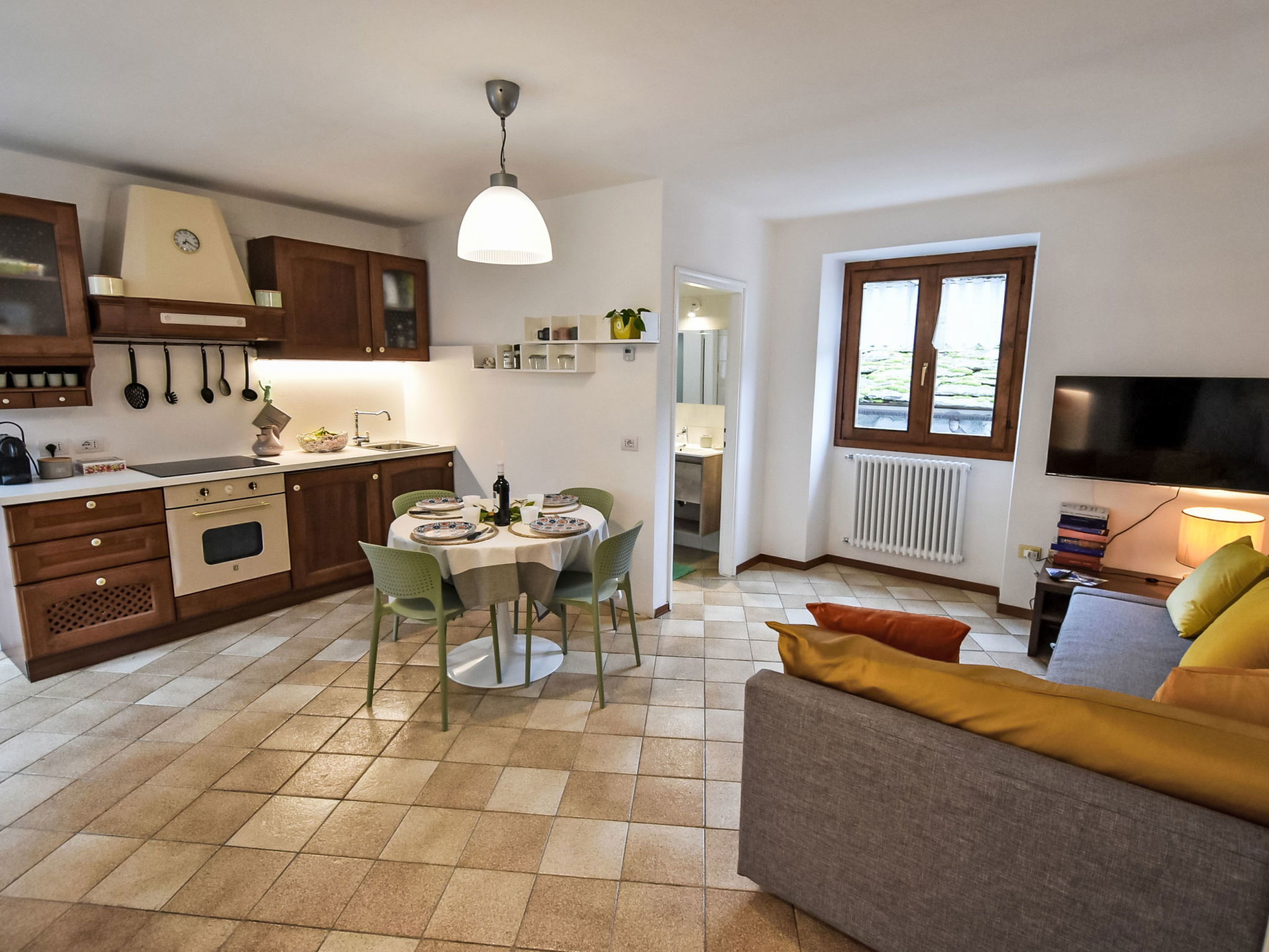 2-Zimmer-Wohnung 55 m2 im 1. Stock, Südlage. Hell, vollständig renoviert im Jahre 2025, komfortabel und geschmackvoll eingerichtet: grosses Wohn-/Esszimmer mit 1 Doppeldiwanbett, Esstisch und TV. 1 Doppelzimmer. Ausgang zum Balkon. Kochnische (Backofen, Geschirrspüler, 4 Induktionskochplatten, Toaster, Wasserkocher, Mikrowelle, Tiefkühler, elektrische Kaffeemaschine, Kapseln für die Kaffeemaschine (Nespresso) gratis). Dusche/Bidet/WC. Heizung. Balkonmöbel. Panoramasicht auf die Berge und das Tal. Zur Verfügung: Waschmaschine, Kinderhochstuhl, Babybett, Haartrockner. Internet (Wireless LAN, gratis). Bitte beachten: Nichtraucher-Unterkunft. Maximal 1 Haustier/Hund erlaubt. Rauchmelder, Feuerlöscher. IT014022C2FI5KJ93A