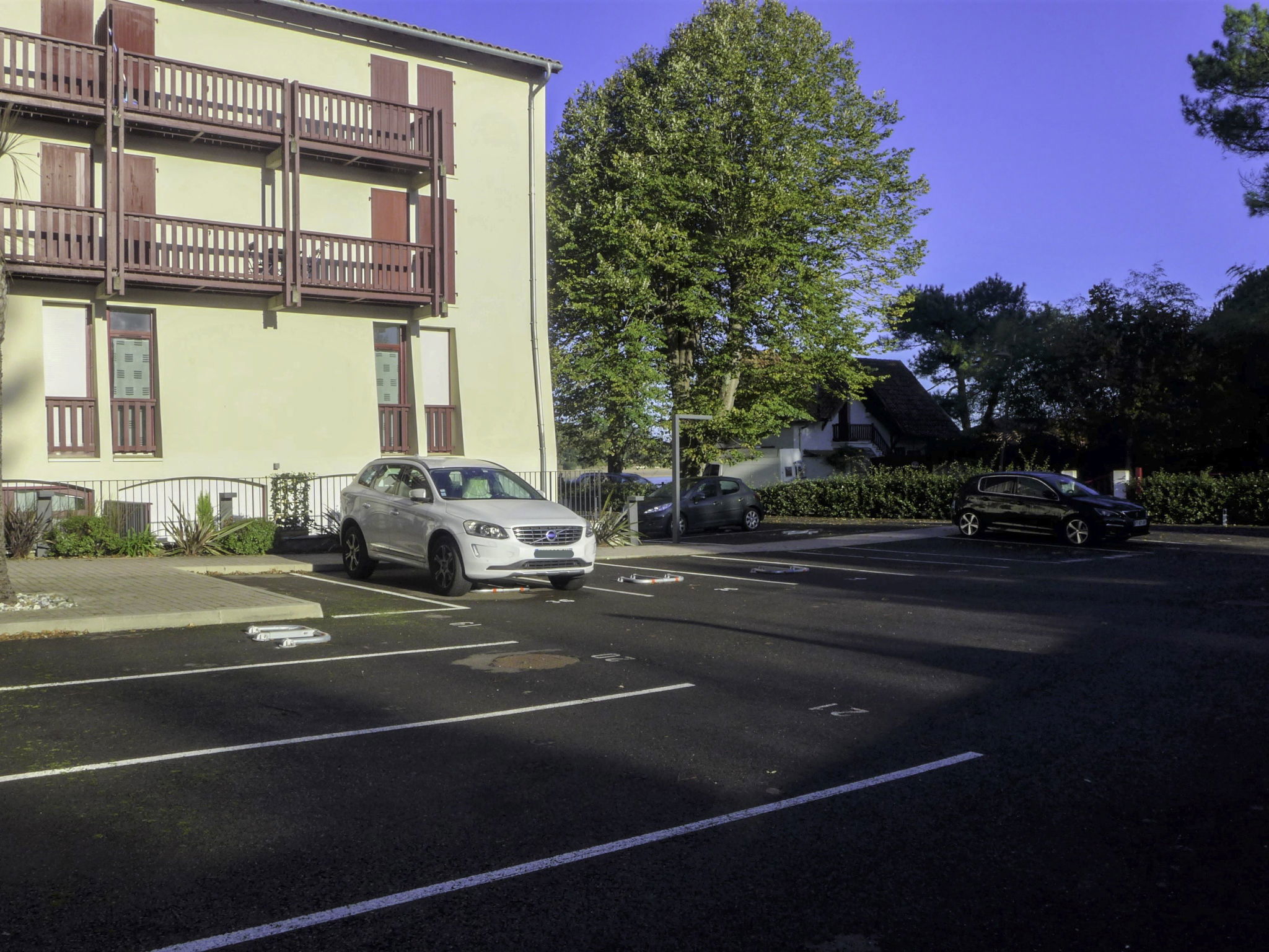 Hossegor: Residenz "la Pergola", Baujahr 2018. Im Ortszentrum von Hossegor, zentrale Lage, exzellente Lage: Absolut zentral und dennoch ruhig, 1 km vom Meer, 50 m vom See, Richtung Osten. Parkplatz. Einkaufsgeschäft, Lebensmittelgeschäft 50 m, Supermarkt 1 km, Restaurant, Bar, Bäckerei, Café, Fahrradverleih 50 m, Bushaltestelle "soorts hossegor- office tourisme" 350 m, Sandstrand 1 km. Golfplatz (18 Loch) 1 km. Jugendgruppen nur auf Anfrage.