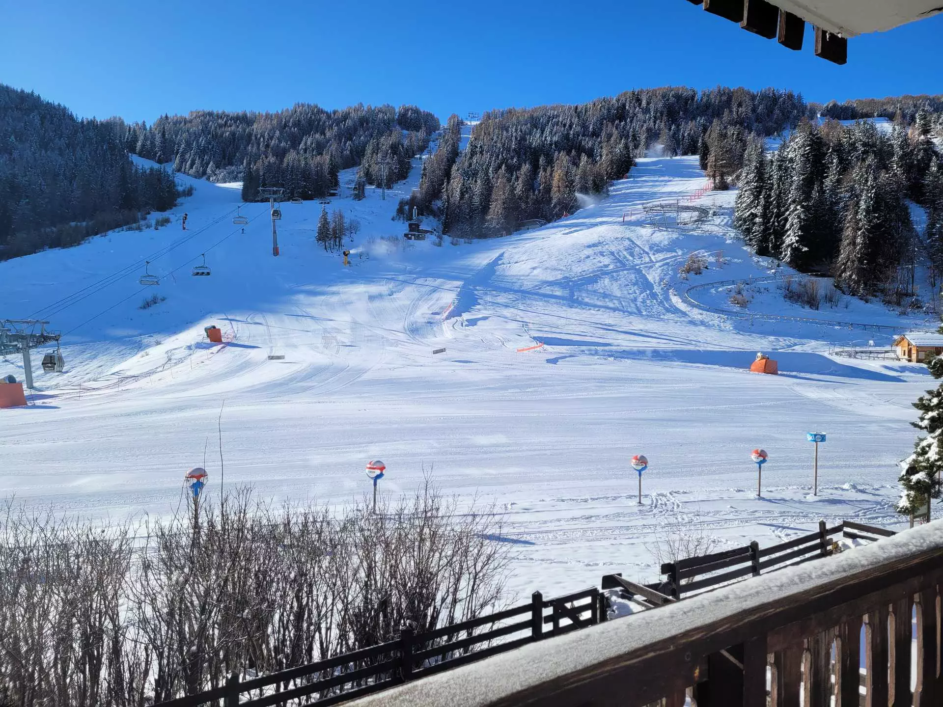 KOMMENTARE: Geräumiges, angenehmes und helles Apartment, Bettdecken für alle Betten. Privilegierte Lage mit Blick auf die Pisten. Individuelle Skibox.