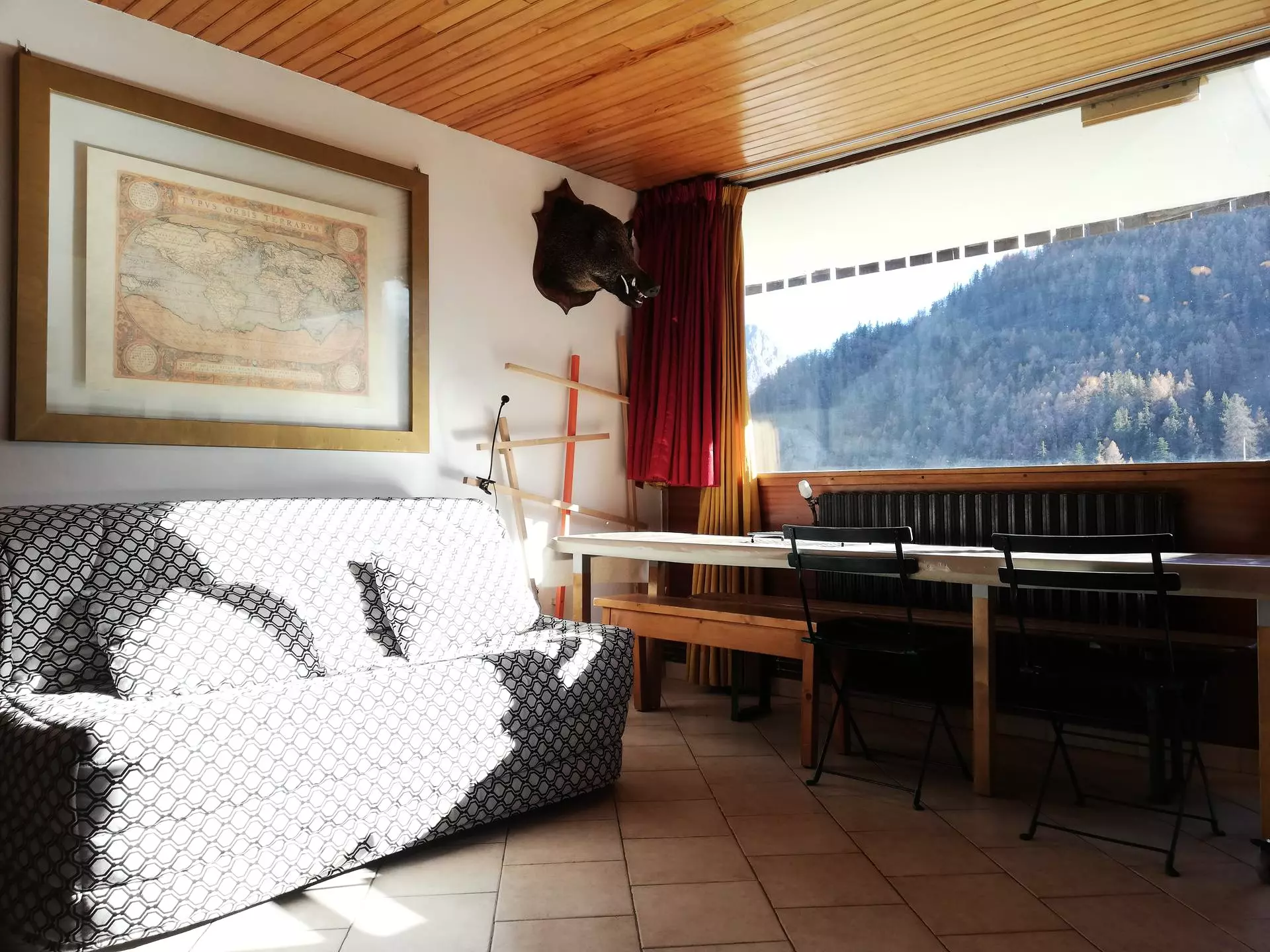 2-Zimmer-Wohnung für 4/6 Personen, ca. 42m². Liegt im 2. Stock ohne Aufzug, Treppenhaus B, an der Schräge. Südlage mit Balkon und Blick auf die Pisten und den Zuckerhut.