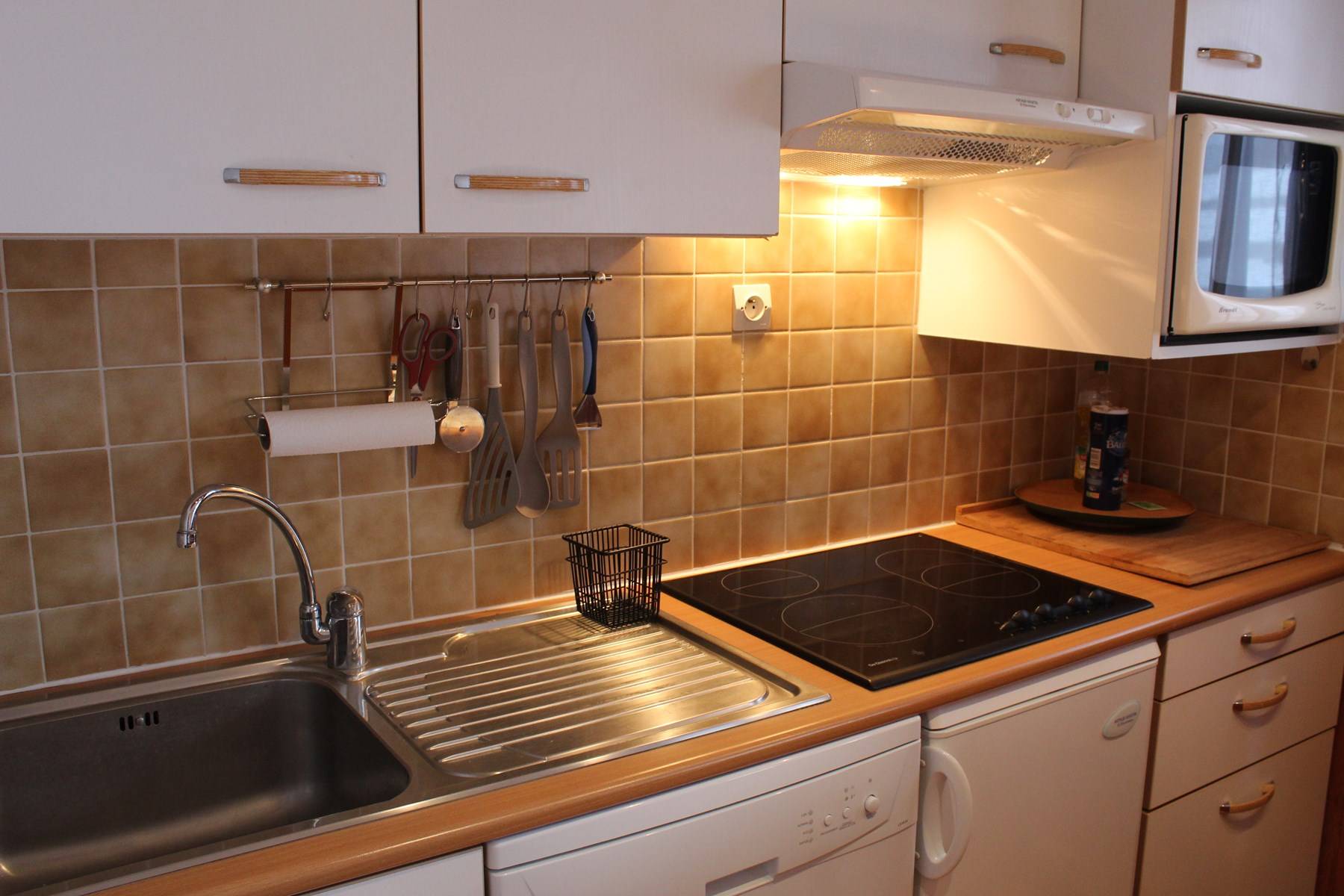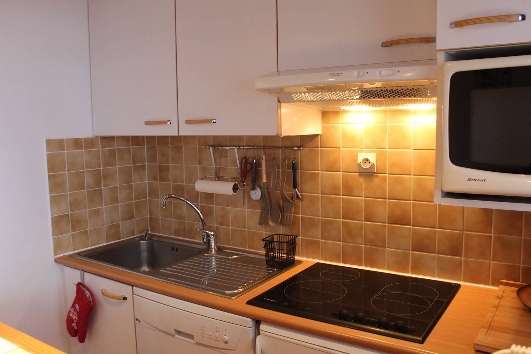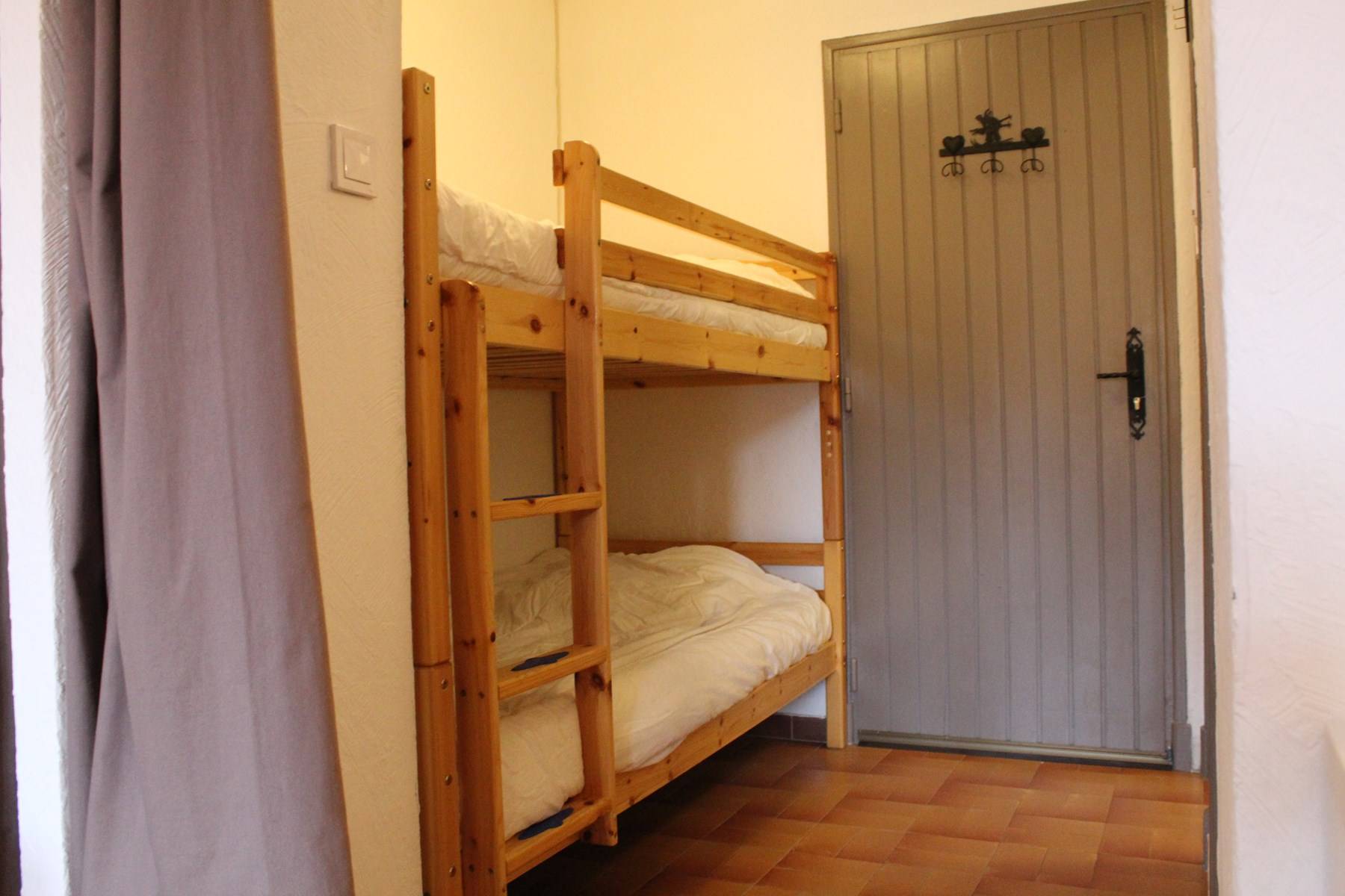 Unterkunft: Diese Ferienwohnung umfasst zwei Zweisitzer-Clic-Clac-Schlafsofas im Wohnzimmer, einen ausgestatteten Küchenbereich und einen Balkon. Im Eingangsbereich befindet sich die Bergecke mit zwei einzelnen Etagenbetten. Und ein Badezimmer mit Dusche und separater Toilette.