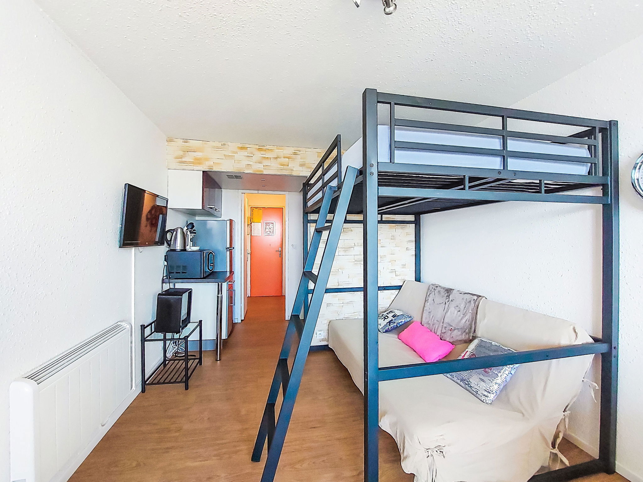 1-Zimmer-Studio 22 m2 im 16. Stock, Nordlage. Schön eingerichtet: Wohn-/Esszimmer mit 1 Doppeldiwanbett (140 cm, Länge 190 cm), 1 x 1 Etagenbetten (140 cm, Länge 190 cm), TV (Flachbildschirm), Stereoanlage. Ausgang zum Balkon, Richtung Norden. Kochnische (2 Glaskeramikplatten, Toaster, Wasserkocher, Tiefkühler, elektrische Kaffeemaschine, Kapseln für die Kaffeemaschine (Tassimo) extra, Racletteofen, Kombinationsmikrowelle, Fondue Set (Käse)). Bad/WC. E-Heizung. Parkettboden. Balkon 4 m2, Nordlage. Balkonmöbel. Schöne Sicht auf die Berge und das Tal. Zur Verfügung: Bügeleisen, Haartrockner. Internet (WLAN, extra). Bitte beachten: Nichtraucher-Unterkunft. Maximal 1 Haustier/Hund erlaubt. Rauchmelder. Inserat einer Privatperson nach Artikel 155, IV, CGI.
