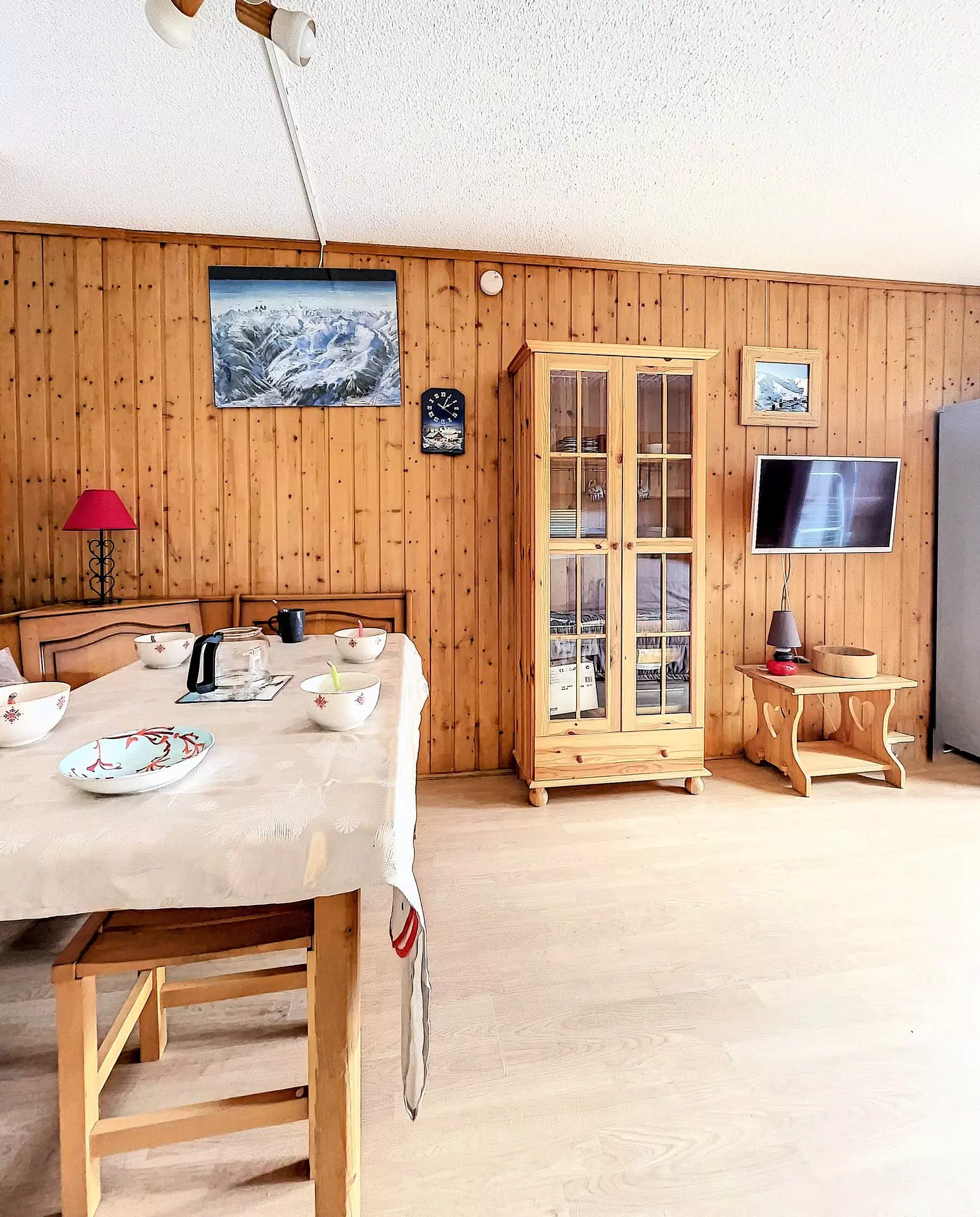 Das gemütliche Wohnzimmer verfügt über ein 130x190 cm großes Schlafsofa für 2 Personen und einen darüber liegenden Stauraum sowie einen Flachbildfernseher. Der Küchenbereich ist separat und umfasst 2 Cerankochfelder, 1 Geschirrspüler, 1 Mikrowelle, 1 kleinen Backofen, 1 elektrische Filterkaffeemaschine, Raclettegerät, Fondue-Set, Toaster, Wasserkocher....