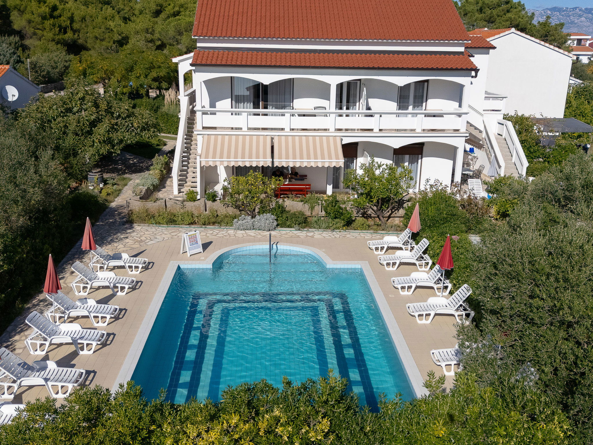 Schönes, gemütliches Mehrfamilienhaus "Vesela". Ausserhalb des Ortes, 1 km vom Zentrum von Vir, sonnige Lage, 400 m vom Meer, 400 m vom Strand, im Grünen. Zur Mitbenutzung: Garten mit Pflanzen und Bäumen, Obstgarten, Schwimmbad eckig (10 x 6 m, 150 - 170 cm tief, saisonale Verfügbarkeit: 04.Mai. - 14.Sep.) mit Innentreppe. Aussendusche, Sitzplatz, Gartenmöbel, Grill, Kinderspielplatz. Im Hause: Internetzugang, Wireless LAN. Parkplatz beim Haus auf dem Grundstück. Einkaufsgeschäft 500 m, Restaurant 1 km, Bushaltestelle 2.2 km, Steinstrand 400 m. Bitte beachten: Weitere Unterkünfte sind buchbar. Ferienwohnung Ref. HR4050.123, 131 befindet sich auf dem gleichen Grundstück. Zur Mitbenutzung: Boccia-Bahn.